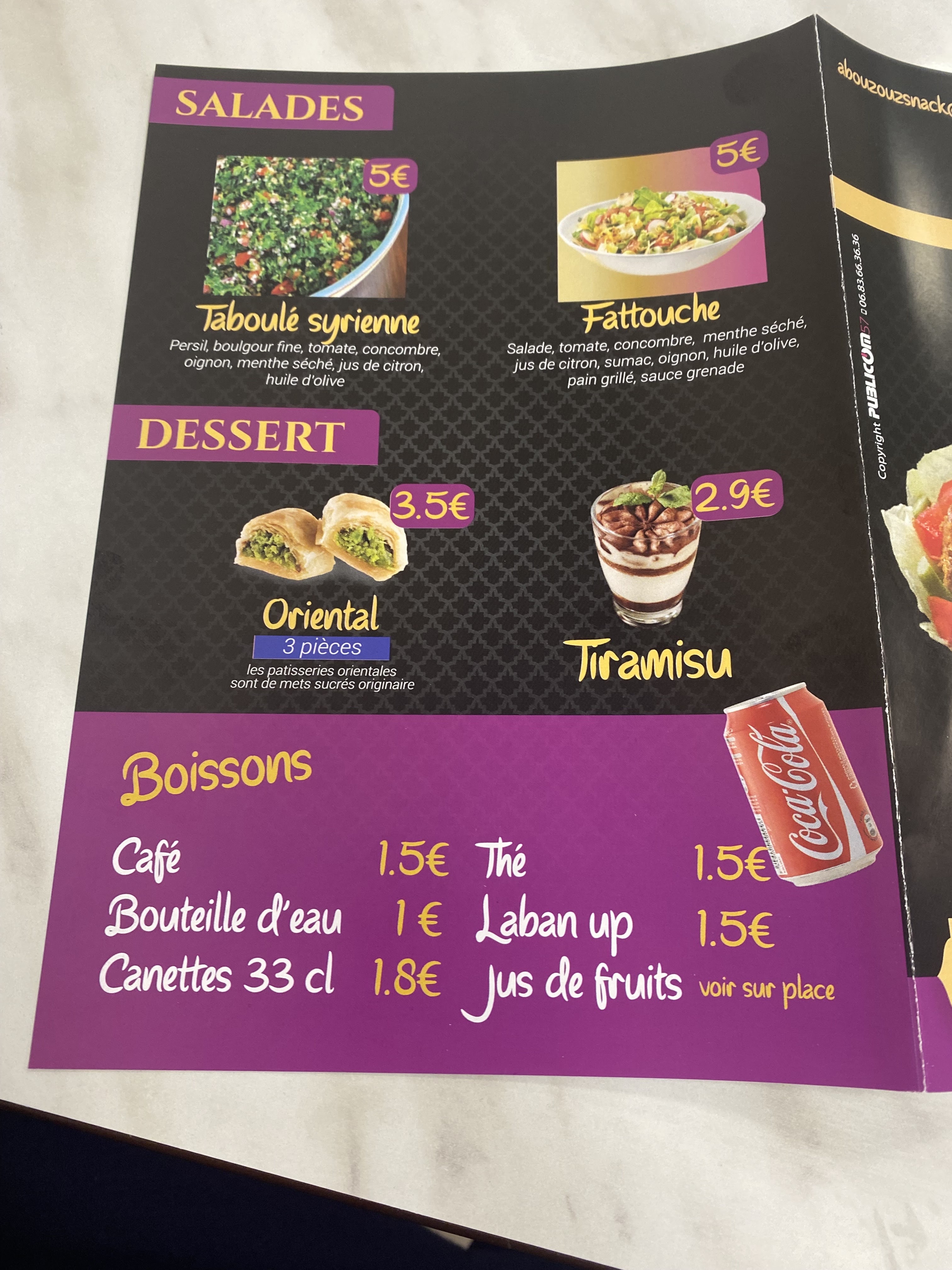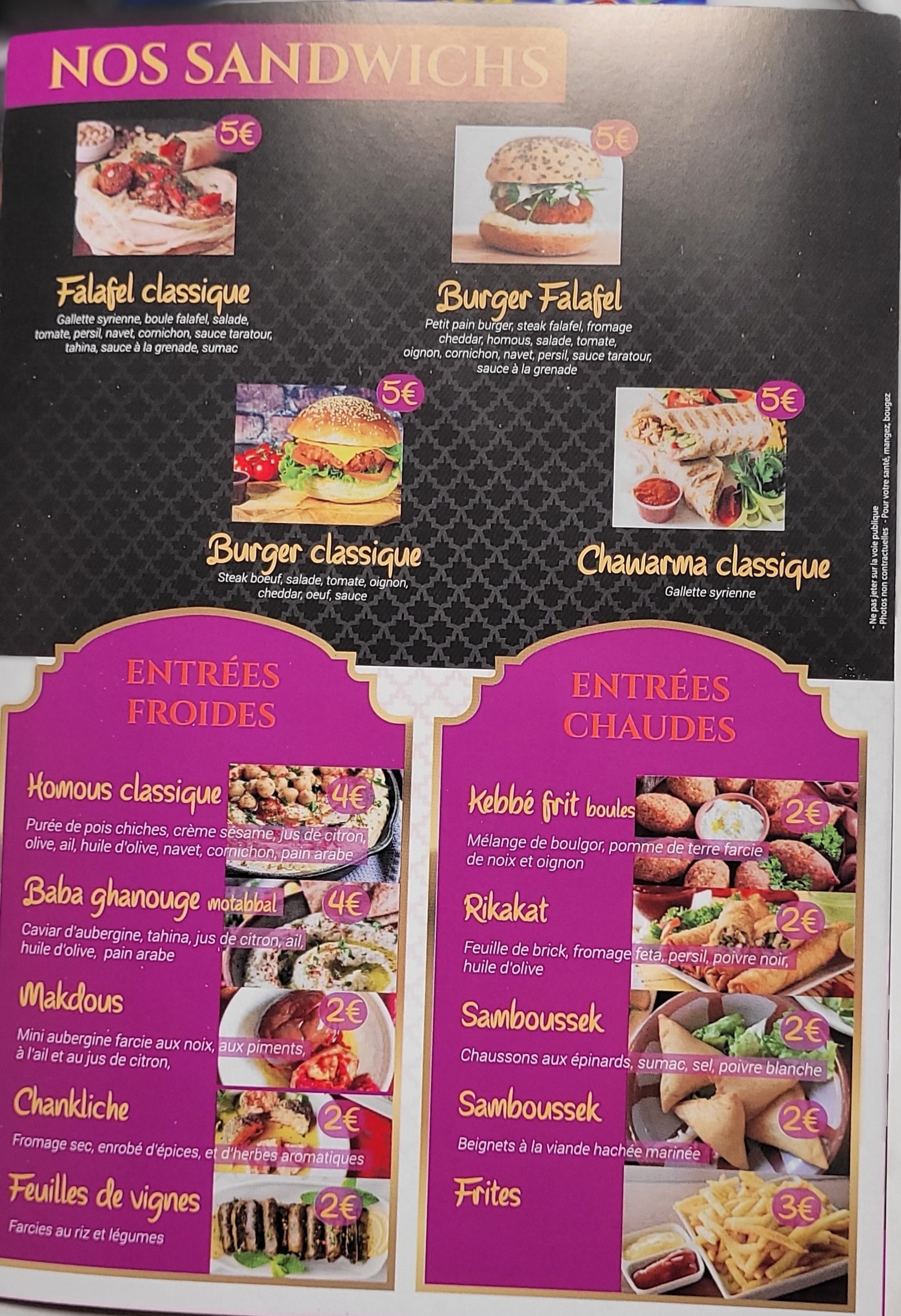 Très bon cuisine, qualque soit le kebe , le taboule , le houmous ou le chawerma. Un des meilleurs snack Syrian sur Metz. Les gérants sont sympa aussi et ils nous a offert de café/thé. Le snack est situé dans une galerie marchande , un peu caché et il mérite une meilleur visibilité qui donne envie à ceux qui connaissent pas la cuisine syrien.