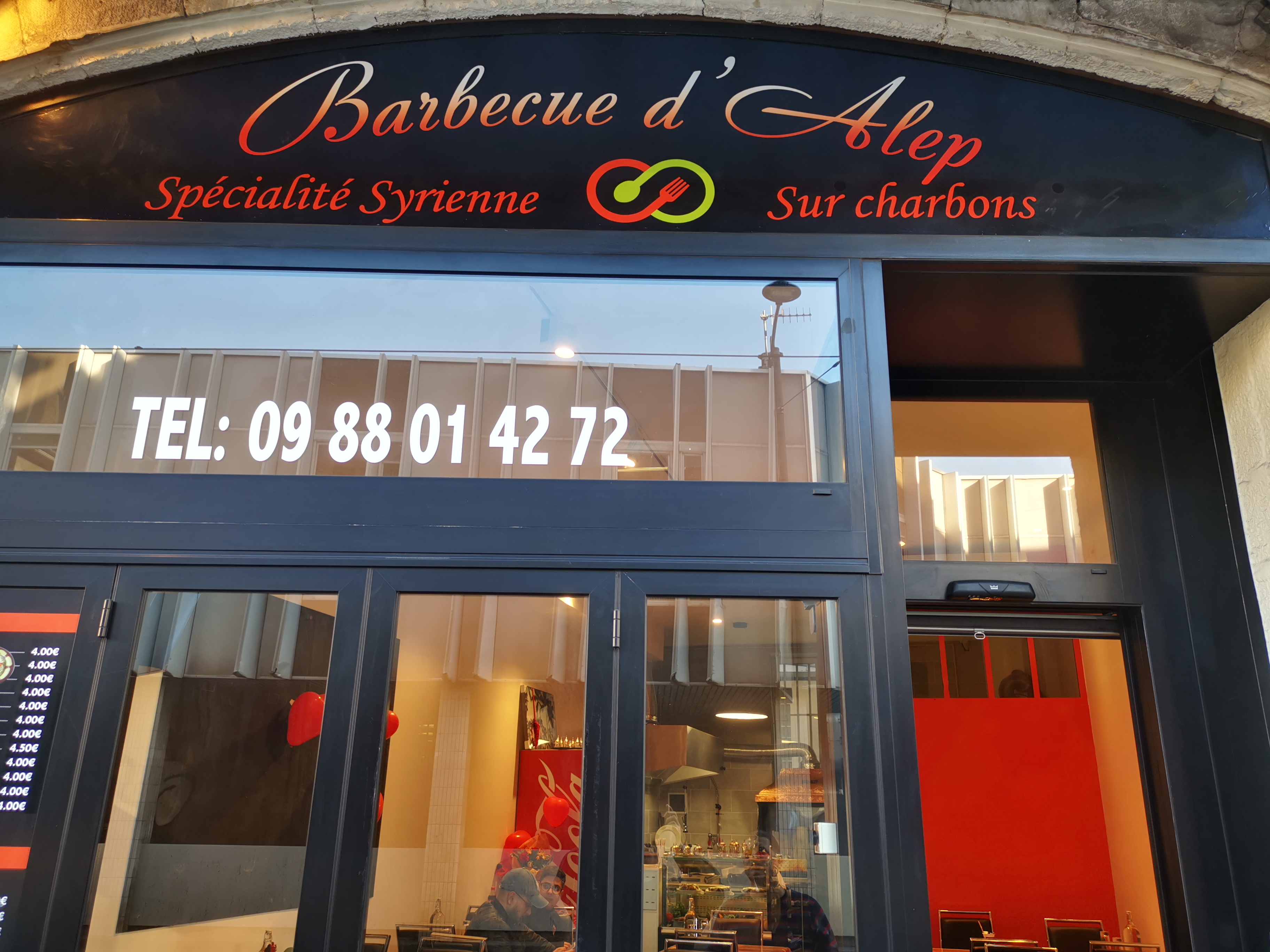 Nous avons mangé à 4 au barbecue d'Alep un midi en semaine. C'etait délicieux on s'est vraiment régalé. Nous avons pris 2 menus sandwich et 2 plats viande. Tout le monde a largement mangé à sa faim. Personnellement j'avais le plat viande et la quantité est largement suffisante pour les gros appétits ! J'ai adoré le caviar d'aubergine qui était vraiment délicieux, pareil pour le houmous. La viande est bonne et encore une fois les quantités sont généreuses. Les épices sont parfaitement dosés, un vrai régale. Le personnel est vraiment très gentil et patient, ca ne pouvait qu'être parfait avec les grands sourires de la dame :) La cuisine est ouverte on peut voir ce qui s'y passe (pour les plus curieux). Les prix sont tout à fait abordables et raisonnables pour la quantité servie. Nous reviendrons sans hésiter !