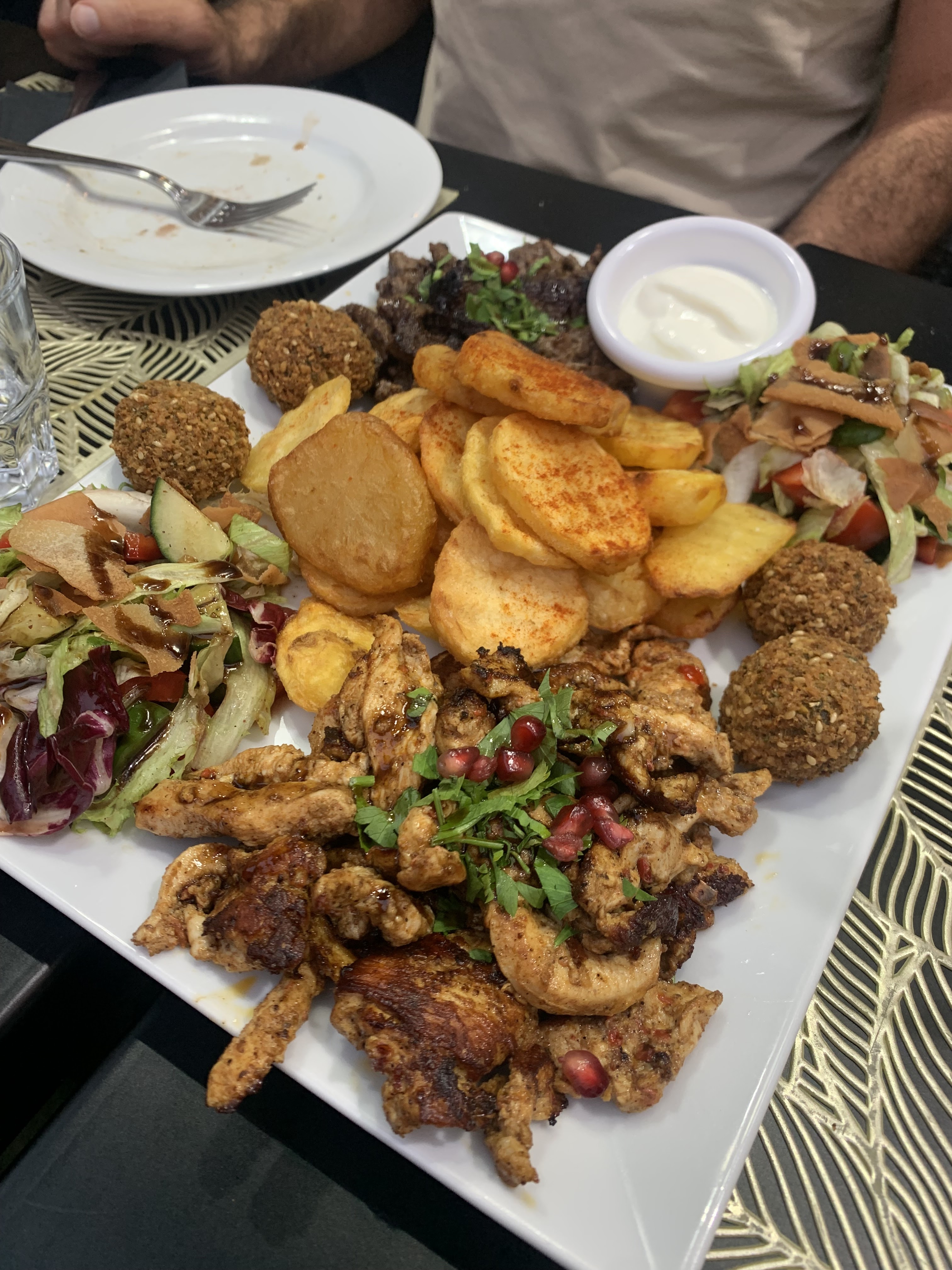 Je ne connaissais pas cette cuisine et je suis vraiment pas déçu. C’était vraiment très bon et nous avons été très bien accueilli, le service a été rapide et soigné. Nous avons goûté les fameuses falafels en entrée. Puis le shawerma de poulet avec une asssiette mix. Et pour finir nous avons pris l’incroyable dessert c’était un cheesecake fleure d’oranger et pistache. Nous avons passé une excellente soirée. Encore merci !!!!