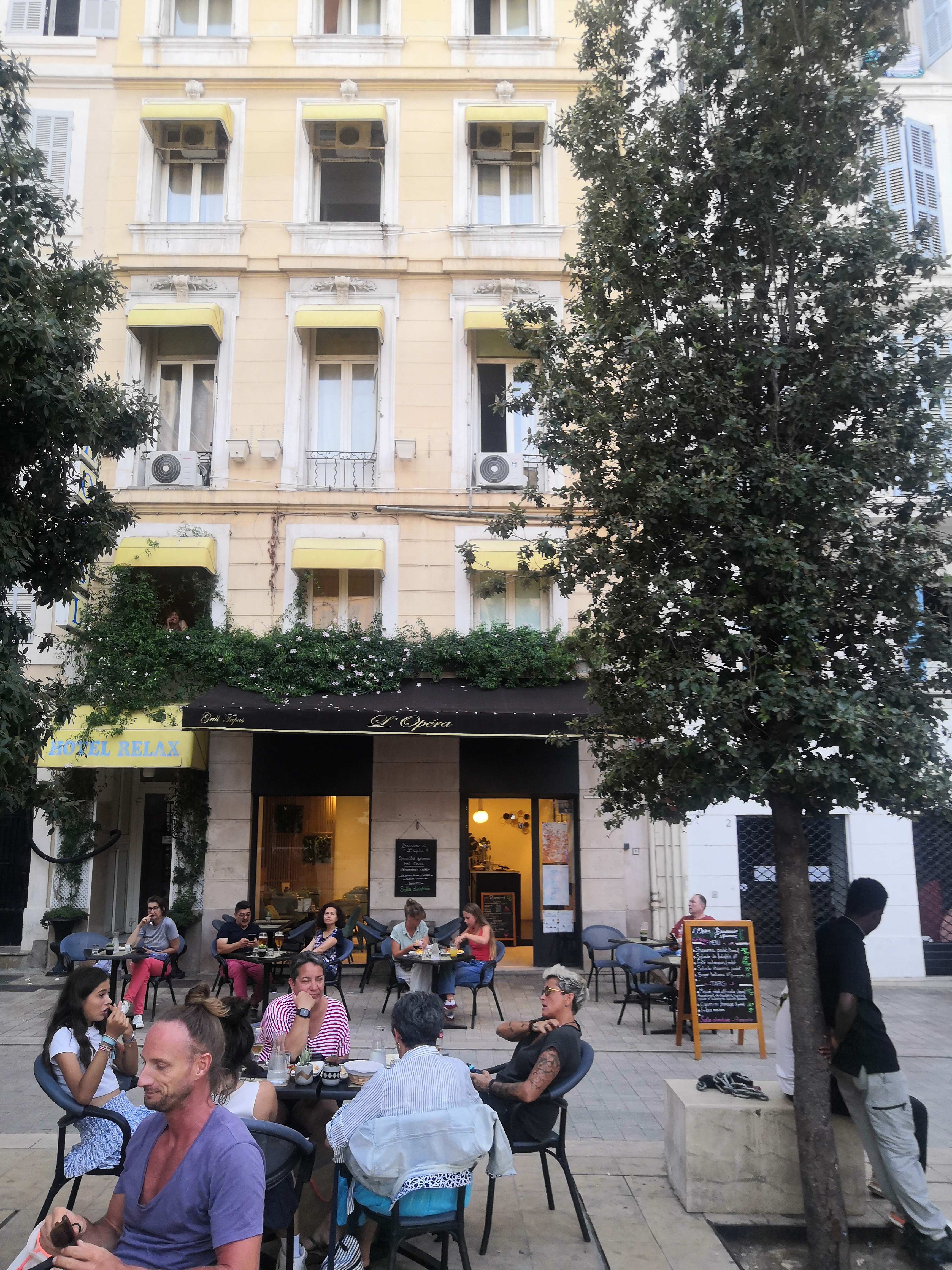 Très bon restaurant situé sur la place de l'opéra. Pause déjeuner entre midi et deux, très calme et ombragé sous parasol. La cuisine est très bonne et le service également. Viande hallal et certains plats sans gluten a des prix très corrects. Je recommande cette adresse évidement