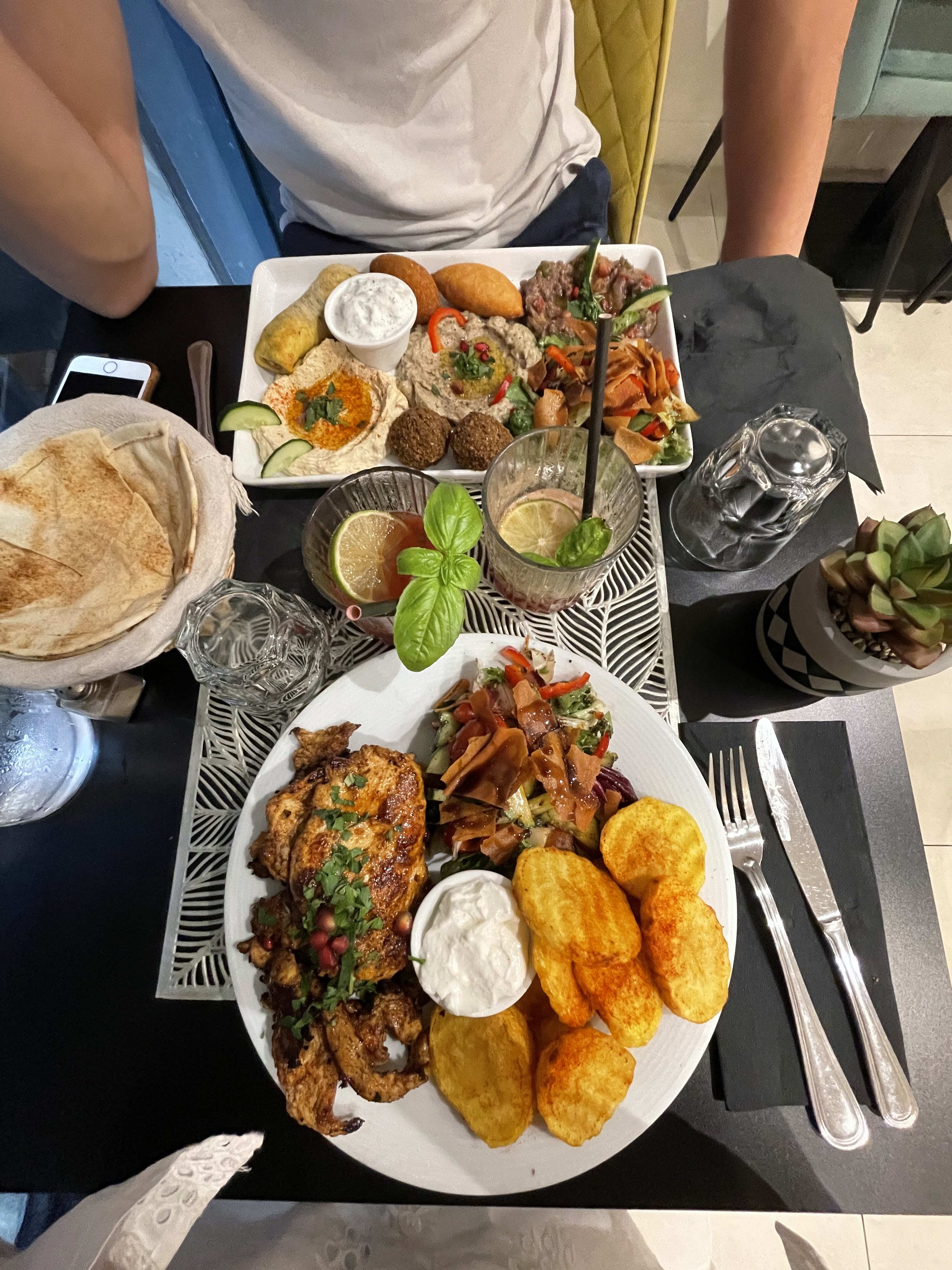On en a mangé des spécialités syriennes dans notre vie, mais là tout était au dessus en terme de saveur (caviar d’aub, houmous, mezze…). On recommande l’assiette mixe !