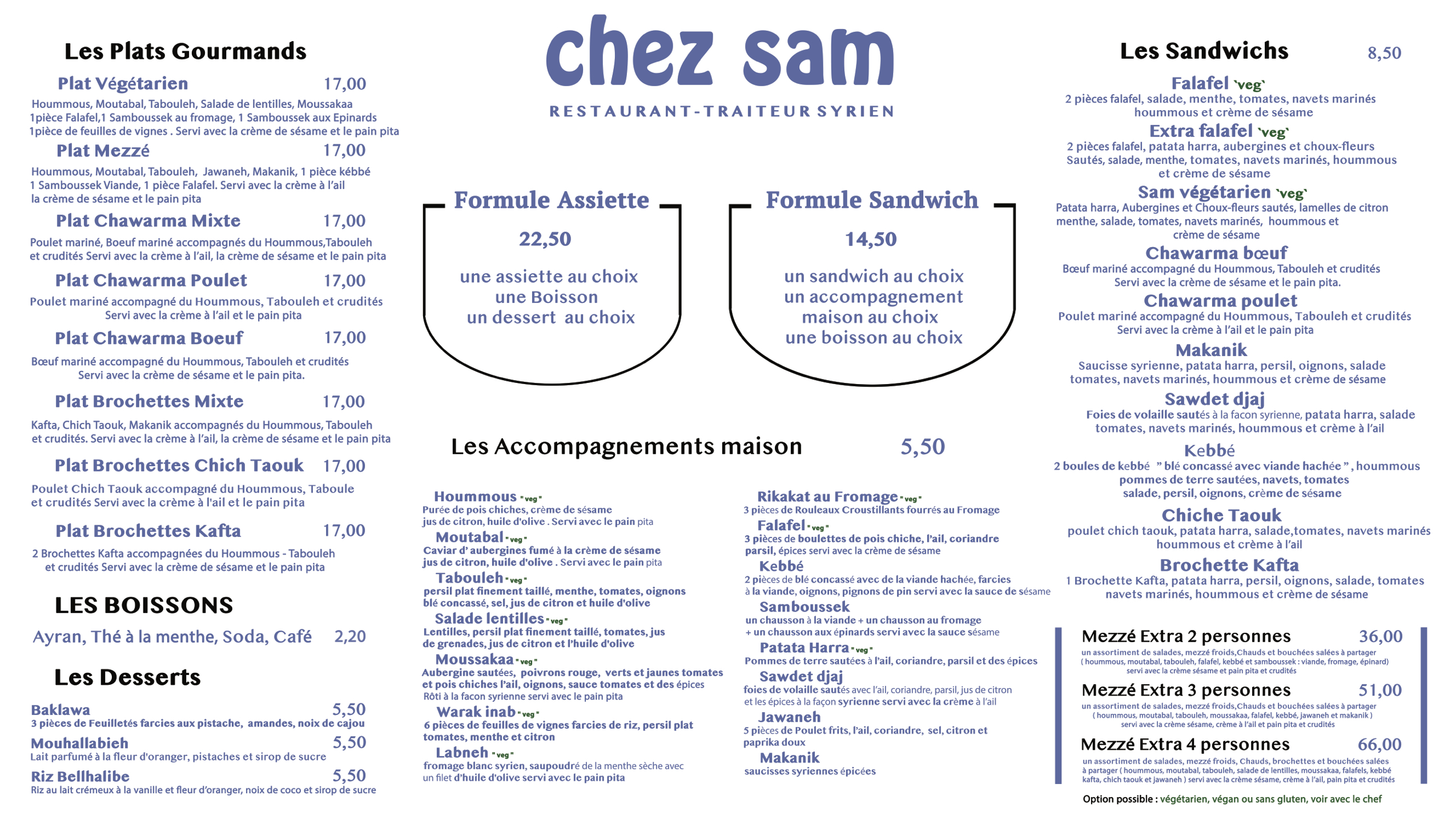 Je n’y suis jamais allé physiquement Chez Sam mais je commande régulièrement via Deliveroo et c’est toujours un délice. Le « Sam syrien » est mon préféré, mais ayant testé presque tous leurs sandwichs tout est merveilleusement bon ! Je ne m’en lasse jamais ! 😊