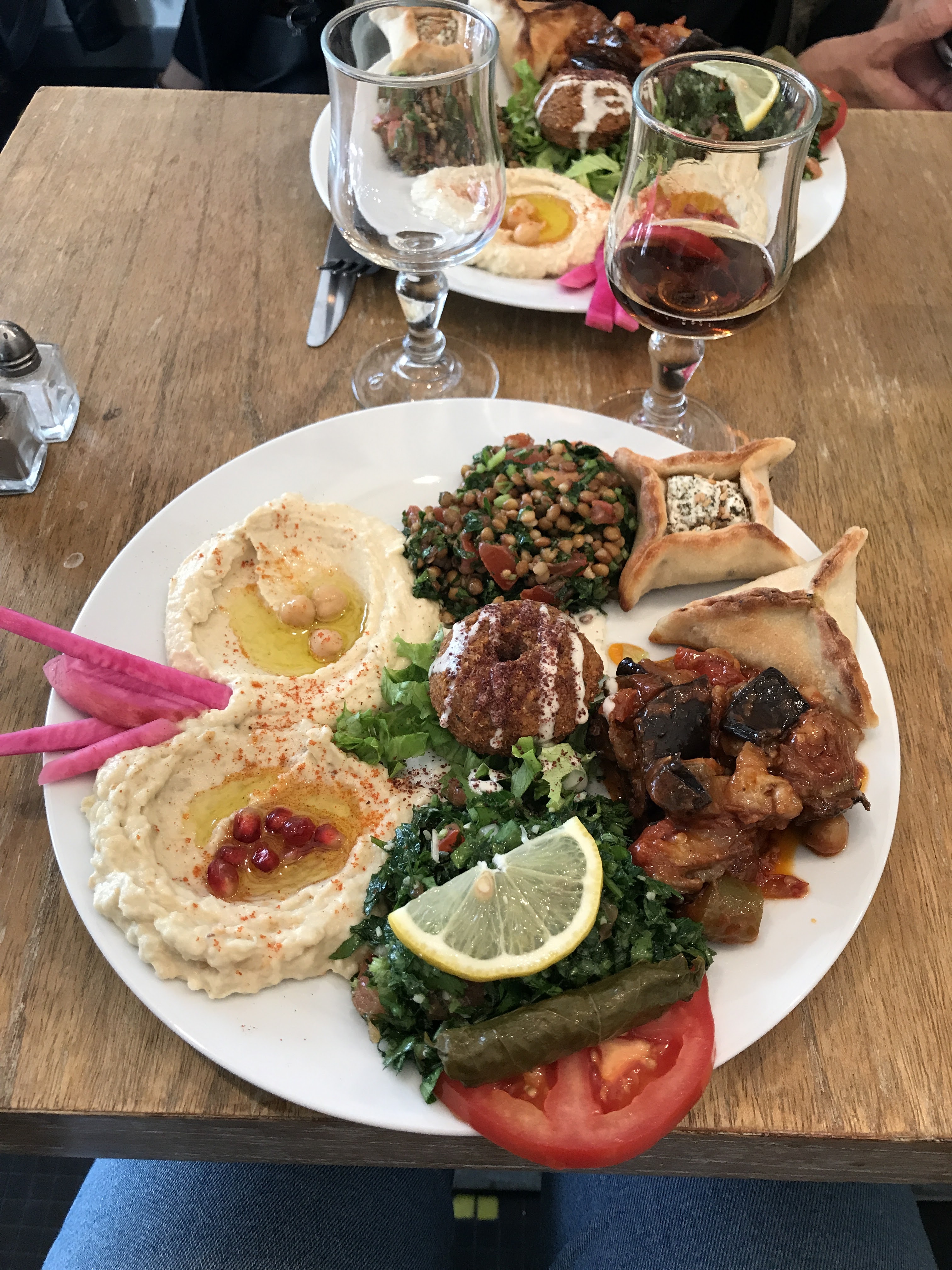 Assiettes très généreuses pour le prix (13-14€ par personne) et tout est bon! La viande est parfaitement cuite, le hummus était délicieux, et les falafels bien assaisonnés. Dommage qu'il n'y ait que quelques tables disponibles à l'intérieur (une dizaine de couverts tout au plus). À essayer absolument!