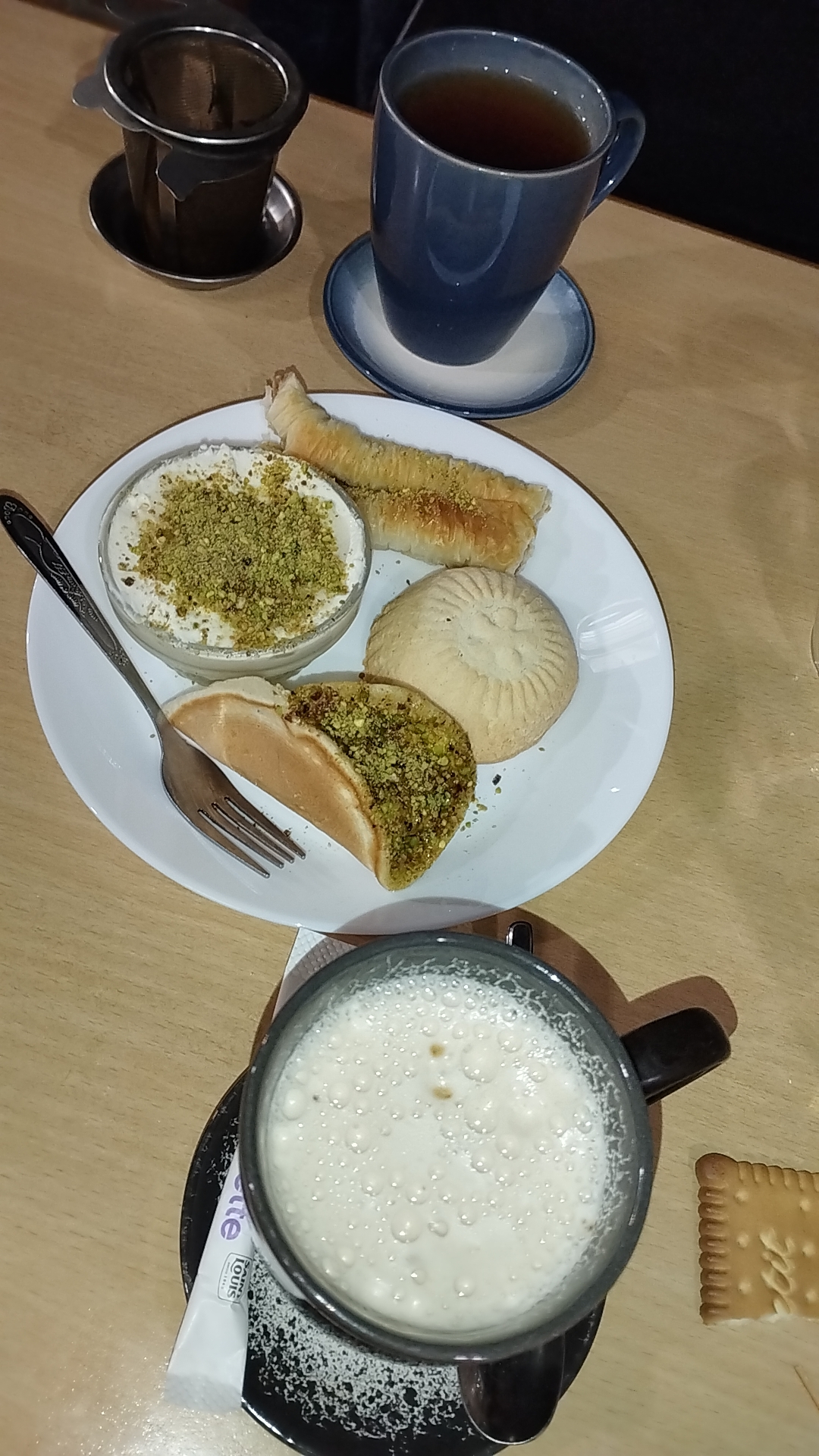 Que ce soit au restaurant après une délicieuse assiette de mezze ou dans leur salon de thé très cosy j'opte pour leur thé gourmand à base de pâtisseries syriennes/libanaises: un régal! Le personnel est très agréable, on est toujours bien accueilli et on repart avec le sourire :)