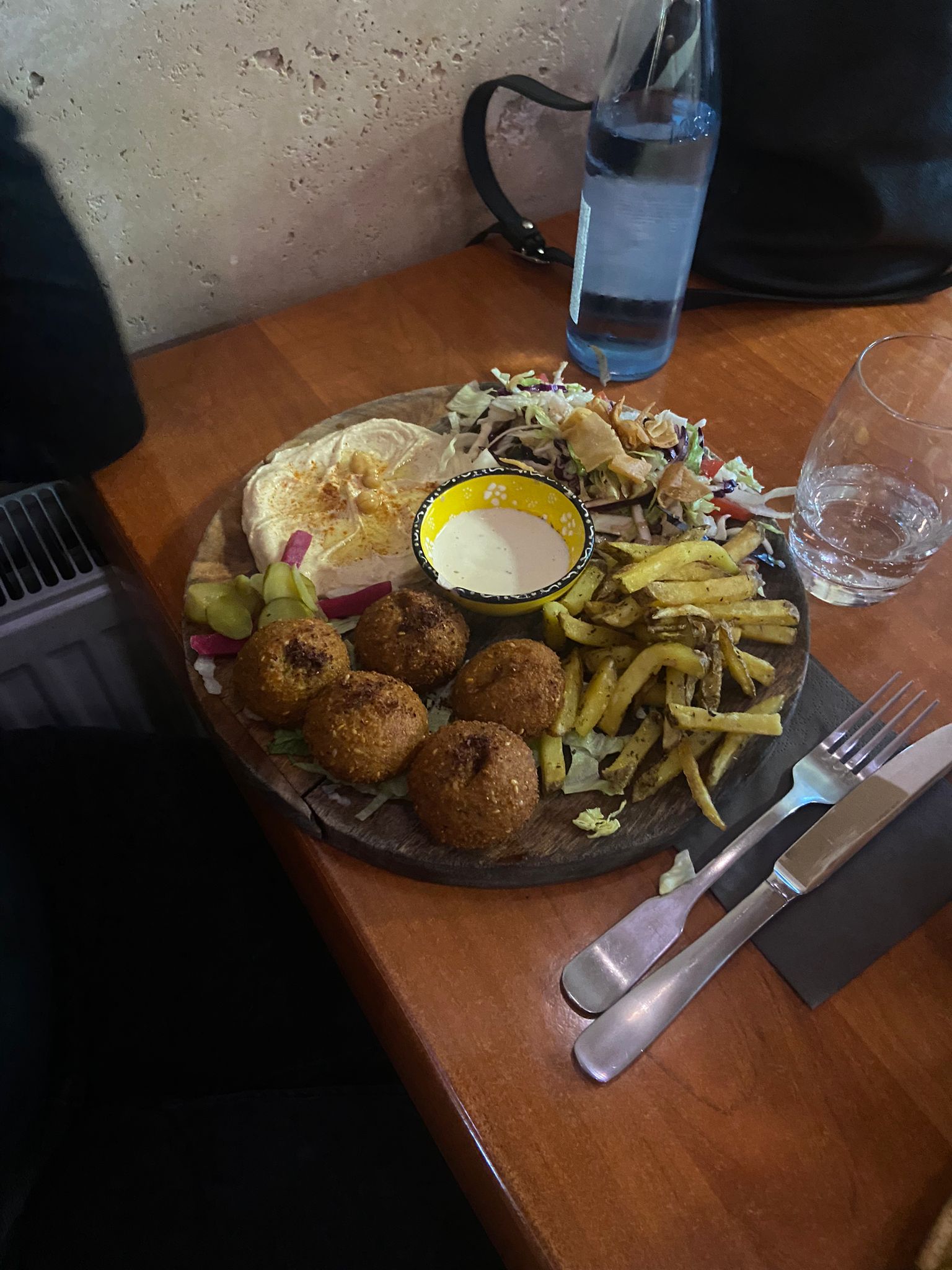 Nous y étions avec 4 garçons sans réservation entre les années. Je suis déjà allé à Damas et le restaurant n'était jamais complètement plein, même s'il n'est pas très grand. C'est en fait dommage, car la cuisine syrienne authentique est vraiment savoureuse, fraîche et au goût unique. Nous avons eu 2x l'assiette mezze végétarienne (environ 19€, photo 1) et 2x l'assiette mezze avec de la viande (environ 21€). Même si vous commandez deux fois le même plat, il peut arriver que vous vous retrouviez avec des mezzés différents dans votre assiette (mais tous étaient délicieux sans exception, donc c'était facile d'essayer différents plats). Conclusion : j'irai une troisième fois chez Damas - mezze frais, fait maison et super savoureux !