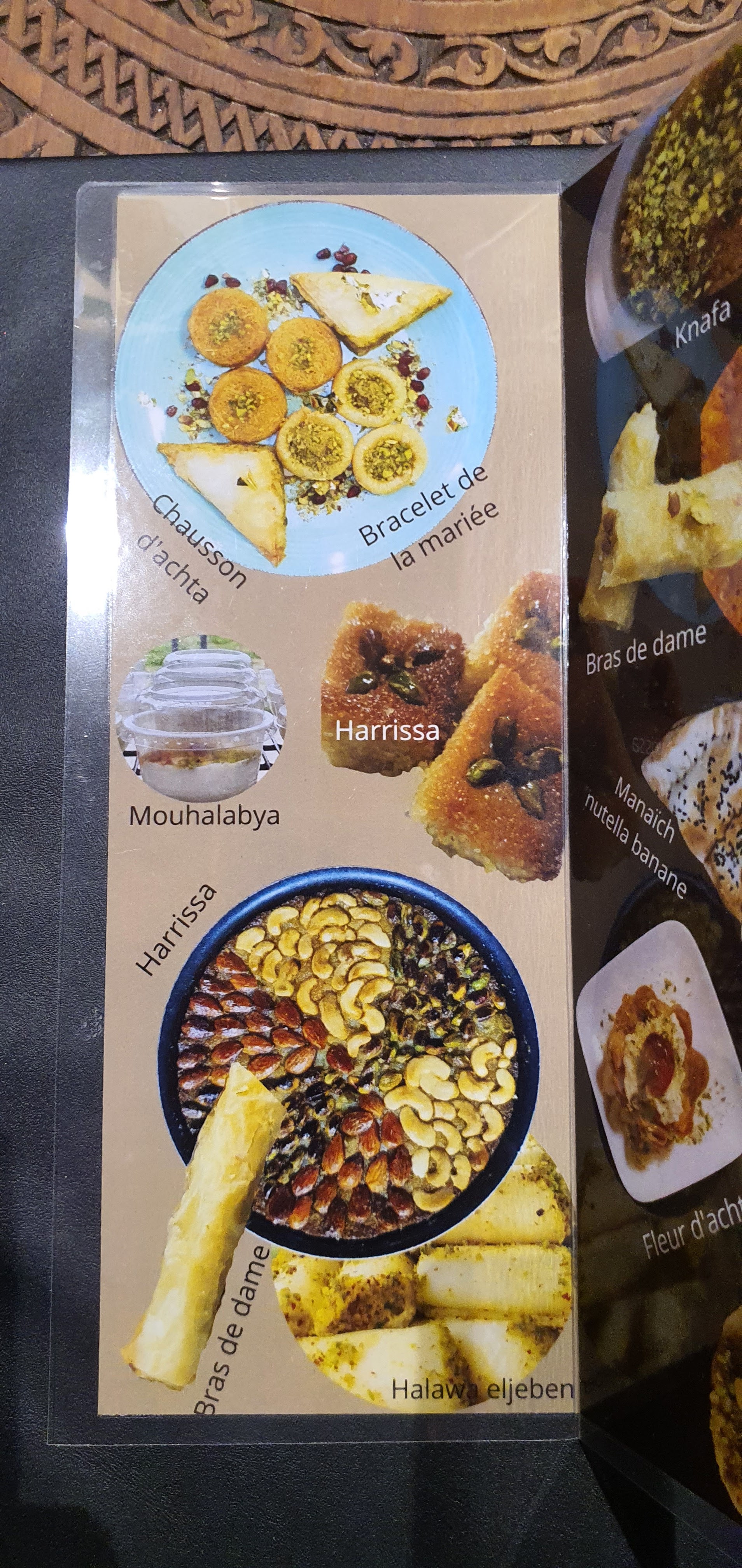 Un joli cadre intérieur, tout est fait maison (jusqu'au pain et aux mélanges d'épices). Les prix sont plus que correct (3 e pour un manaïch de 22 cm de diamètre, 4 e le mezzé, 8 e le plat) et c'est assez copieux. On a découvert de nouveaux goûts et le personnel était très accueillant et très sympathique.