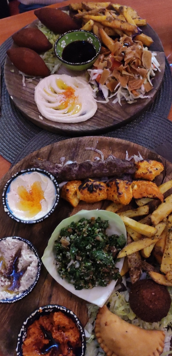 Les plats sont tout simplement excellents, nous avons commandé plusieurs mezze en entrées et des grillades en plat principal et tout était délicieux. Un des meilleurs restaurants libanais/syriens où j’ai mangé, les plats sont parfumés, les quantités généreuses, tout est fait maison. La déco intérieure est sympa et contraste avec l’extérieur (la galerie marchande ne paie pas de mine). Tout petit bémol sur le service un peu chaotique.