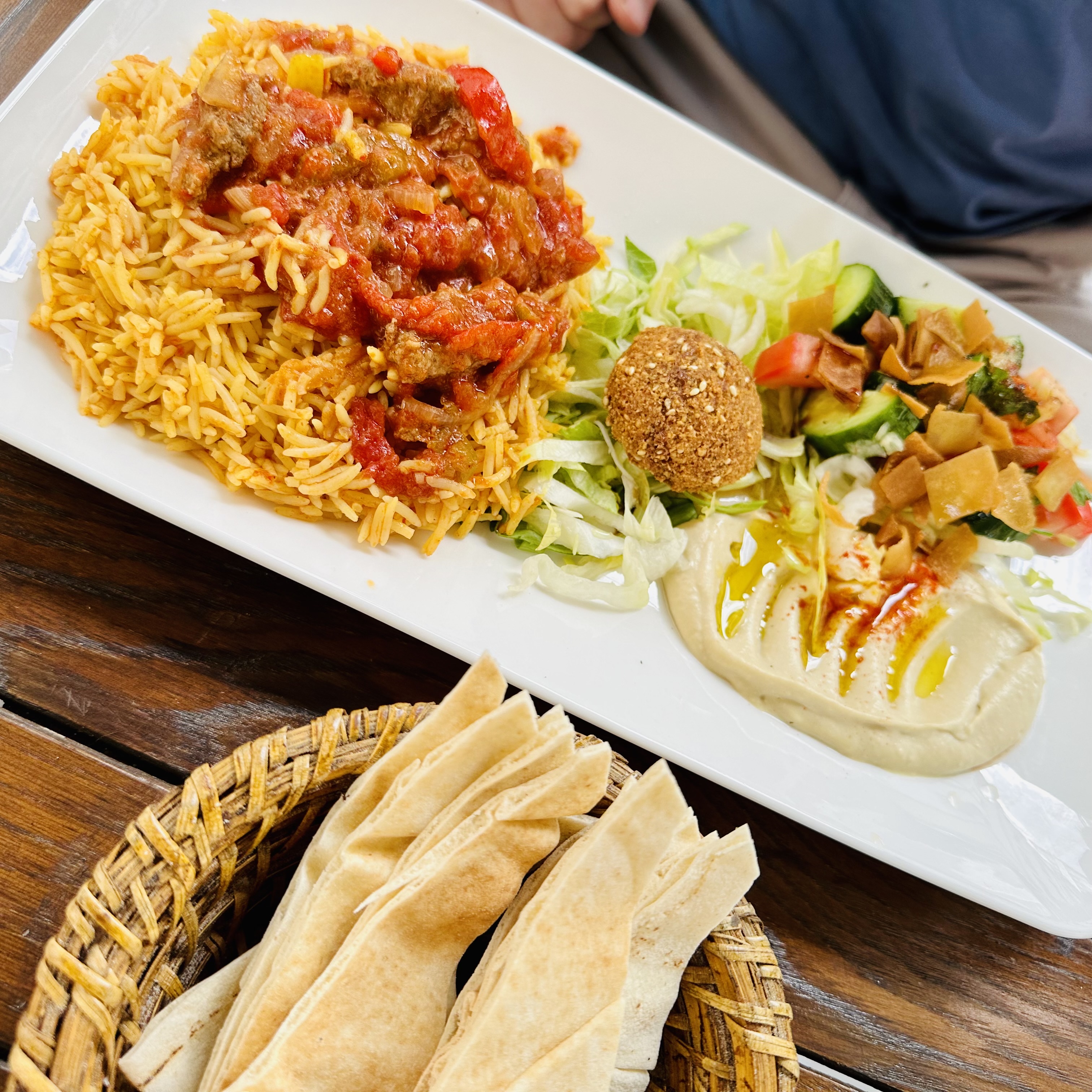 J’ai pris Kabsseh, j'ai vraiment apprécié le riz épicé, cependant, les falafels ne sont pas aussi savoureuses que celles que j'ai déjà goûtées à Offenbach am Main. La keba n'est pas excellente, mais les fatayers sont bonnes. J'enlève une étoile pour le goût et une autre étoile parce que la portion du plat à 14 euros est trop petite. À ce prix, je m'attendais à une quantité plus généreuse.
