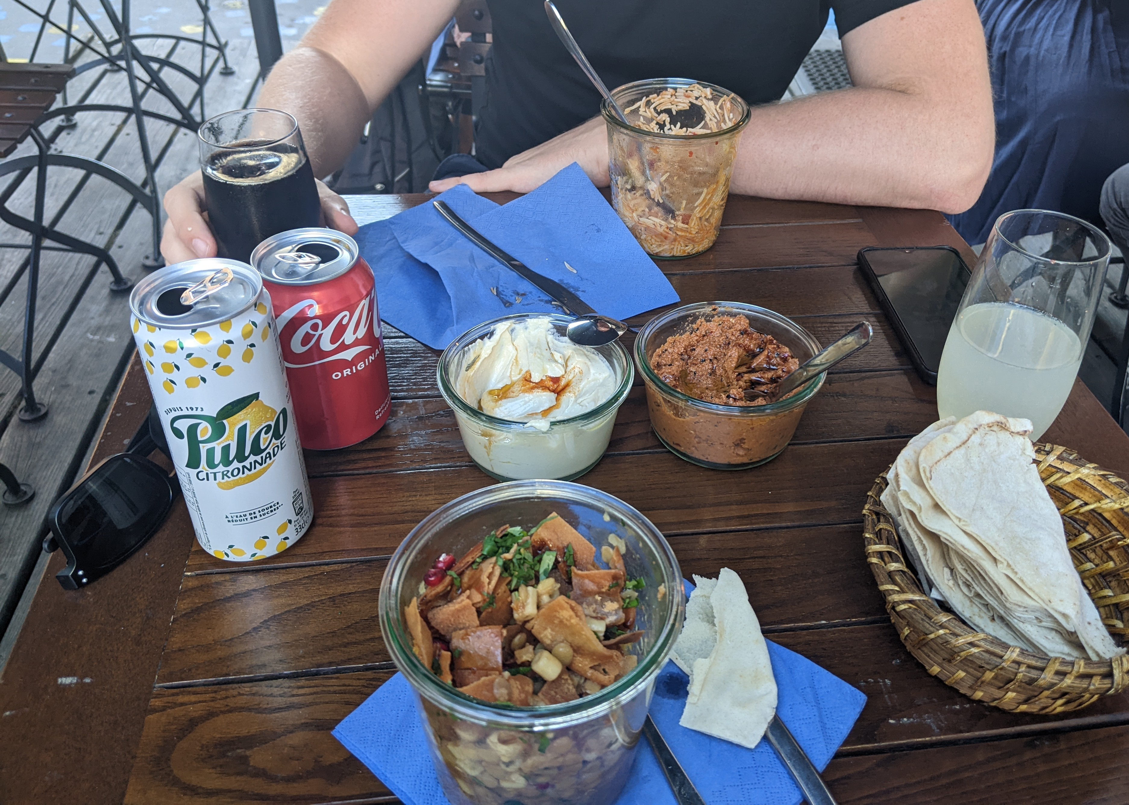 Nourriture délicieuse, malheureusement pas très bon marché et l'un des houmus n'était pas très bon non plus. Eh bien, c'est juste une question de goût. Mais ça va quand même