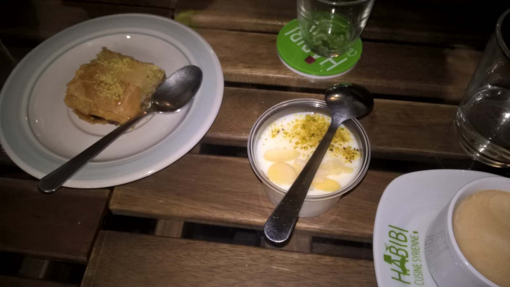 Nous sommes allé manger la bas vendredi dernier au soir. C’était la première fois que nous y mangions (et ça ne sera pas la dernière clairement !!) Nous avons pris la découverte de Damas (assortiment de hors d’œuvres faits maison), des fatayer fromage, des fatayers épinards. Nous avons également pris un flanc maison à la fleur d’oranger saupoudré de pistaches et amandes Tout était parfait !! L’accueil était des plus sympathique, le personnel était très souriant et serviable. J’ai pris également une boite de petits biscuits fourrés à la figue (faits maison également) tout à fait délicieux !!! À reprendre sans la moindre hésitation : ))) Vraiment tout était nickel !!!