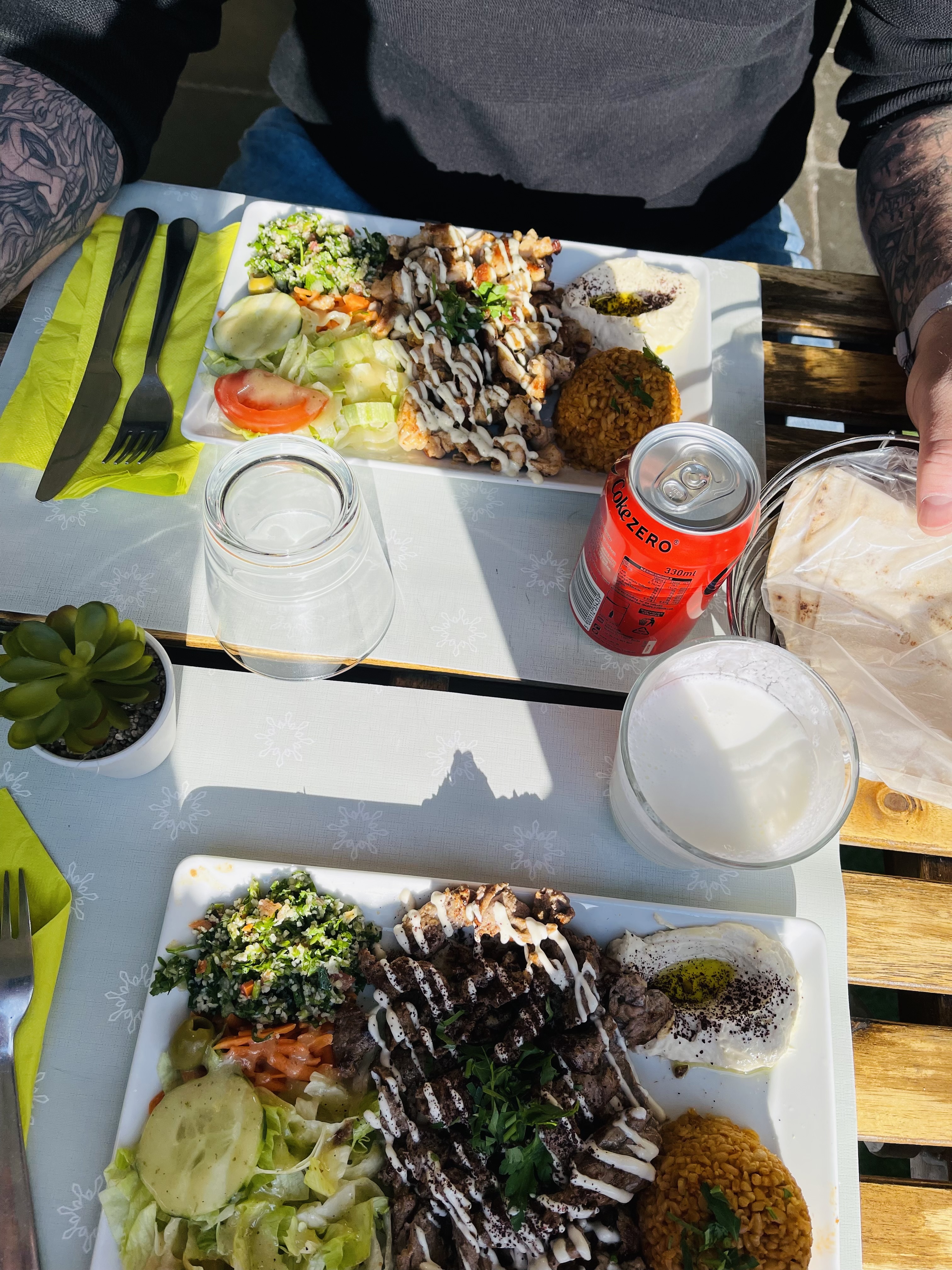 Nous avons mangé en terrasse. Le serveur était sympathique, service rapide avec belle présentation dans les assiettes et surtout très bon ! Belle découverte de la cuisine syrienne. Je recommande à 100%