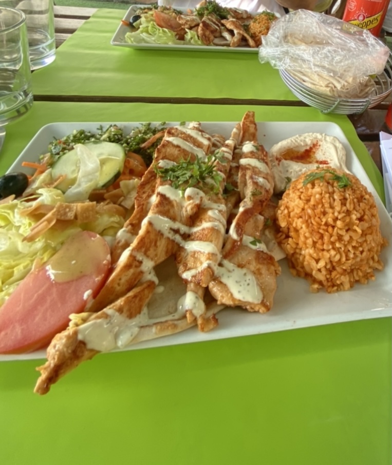 Petit restaurant agréable avec ca terrasse. Niveau confort des chaises et tables c’était pas le top nous étions serrés à table avec les plats et les boisson impossible de manger correctement. Niveau goût c’était vraiment délicieux j’ai beaucoup aimé. Mais malheureusement j’ai pris une assiette de Chawarma mis à part les salades tomates etc j’ai eu très très peu de viande je trouve ça très mal servie niveau quantité. De plus mon assiette et arrivé froide bien dommage! Personnel agreable