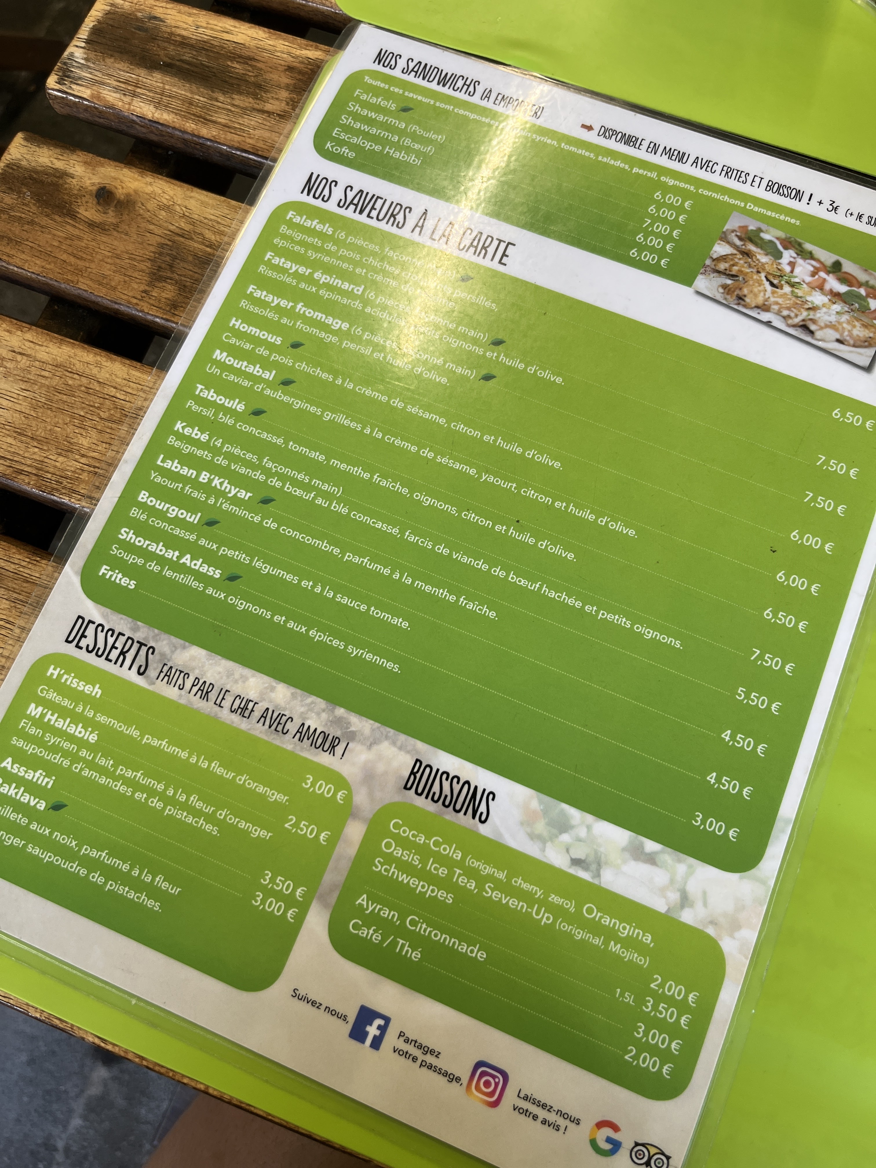 Bonjour, J'aime me rendre dans ce petit resto syrien, j'y mange des falafels, les meilleurs de Strasbourg, faits au fur et à mesure. Ils sont donc servi frais et chaud ce qui est rare aujourd'hui. J'y mange a apporter et sur place, terrasse très agréable. On y retournera !