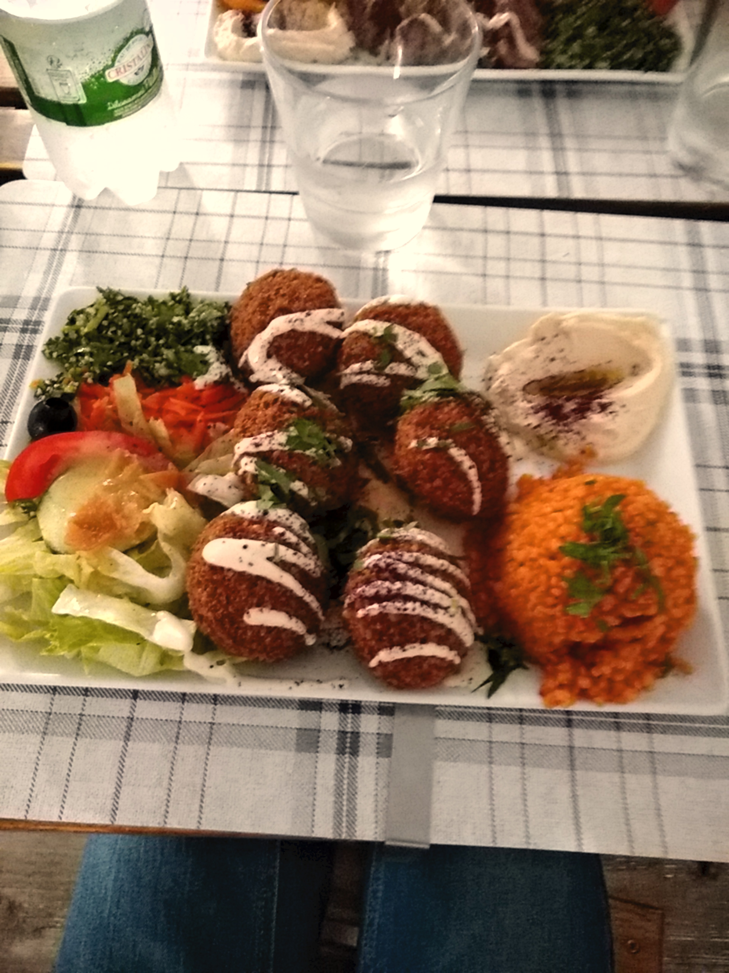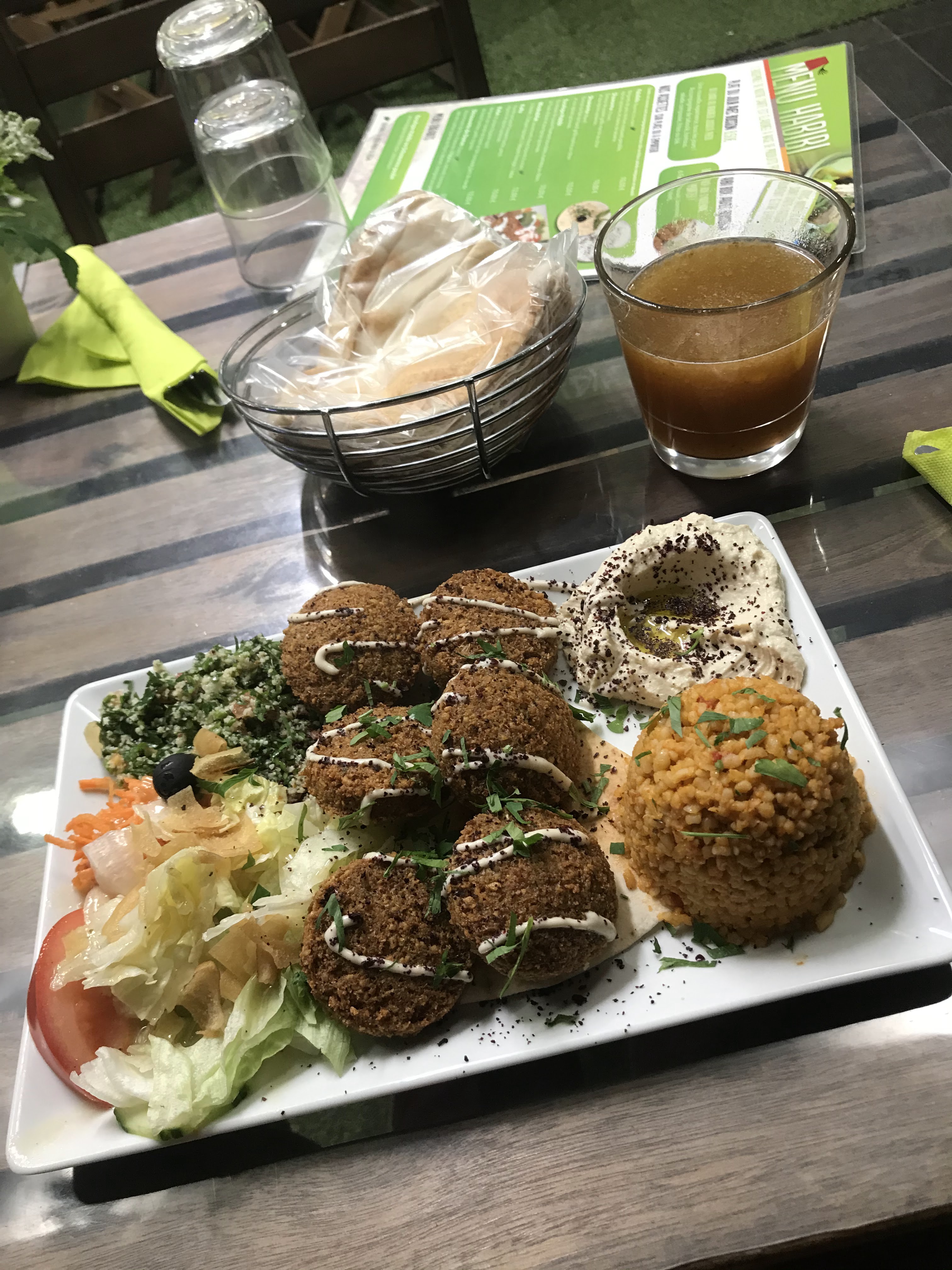 Excellent, personnel sympathique, très bien servis, et repas très convivial. Falafels maison, houmous, taboulet. Très varié et prix corrects. Rien à redire, si ce n'est peut être que le resto est petit. Pensez à réserver et à emmener une veste si vous êtes sur la terrasse