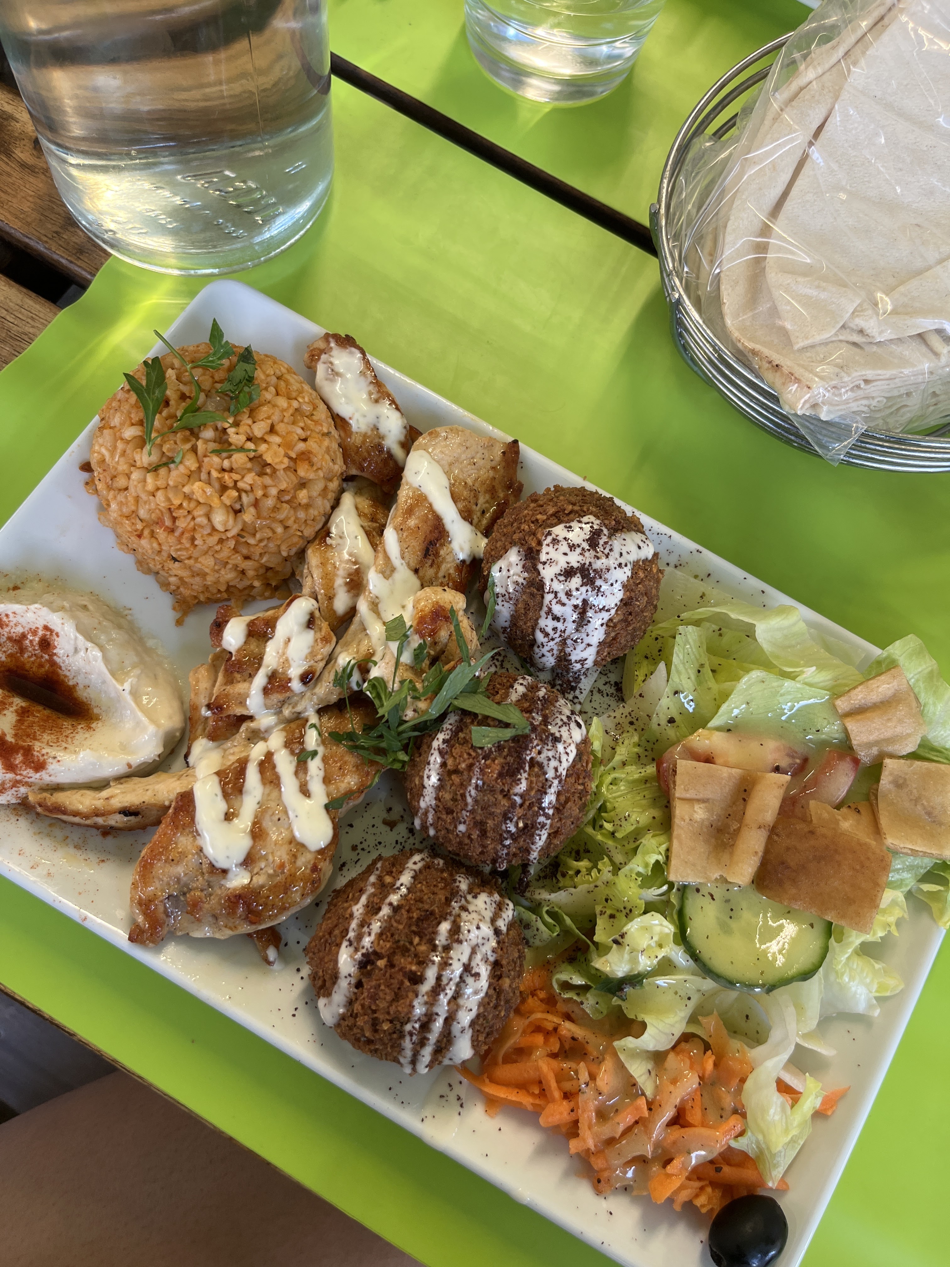 Les falafels sont excellents et les plats sont biens garnis mais le service est un peu long.