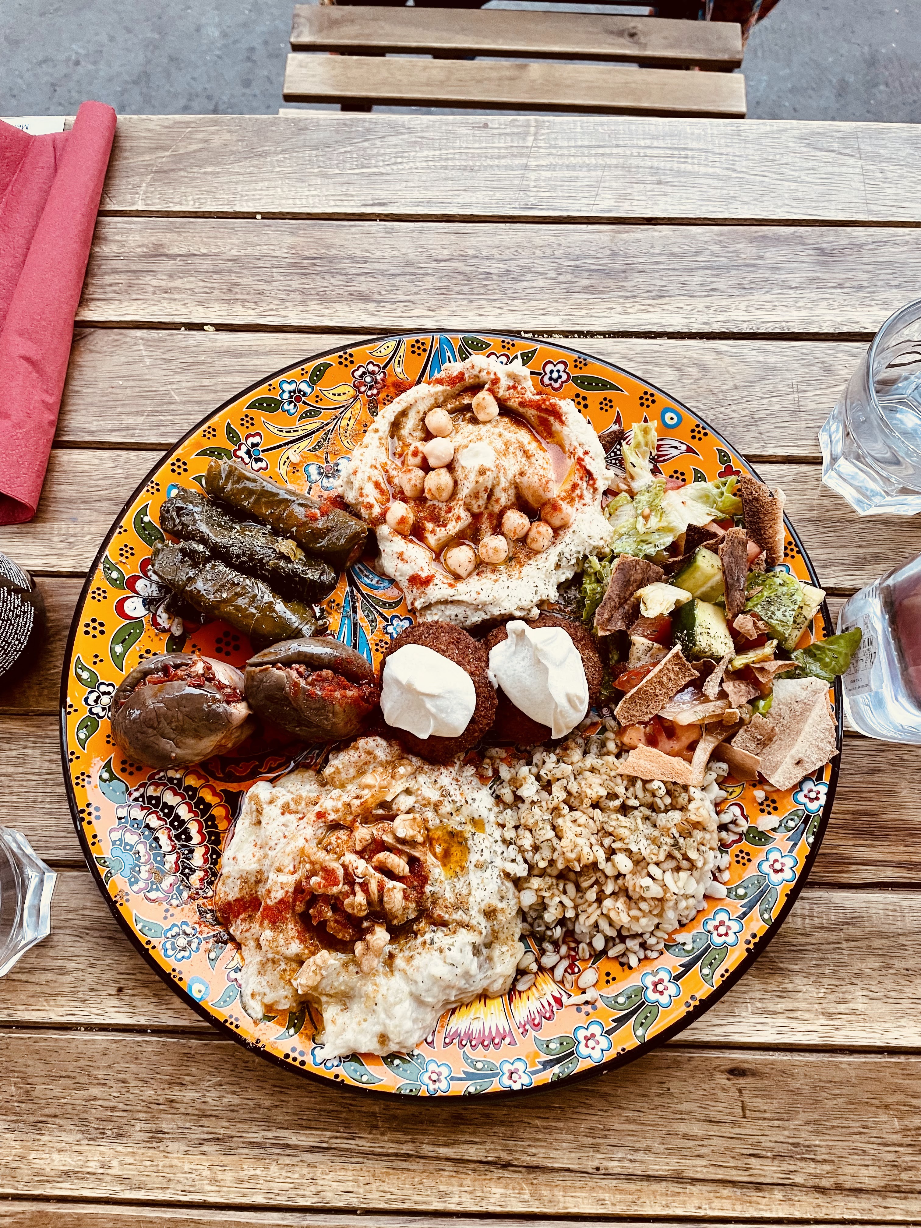 Petit restaurant bien sympa pas de place à l’intérieur uniquement terrasse. Avec mon pote, nous décidons de prendre de prendre des mezzes à partager. Le goût plutôt pas mal .. mais en payant à la caisse, je m’aperçois d’une grosse boîte de conserve contenant les feuilles de vigne tout prêt !! Et en regardant de plus, je ne vois pas l’entrée de la cuisine ..