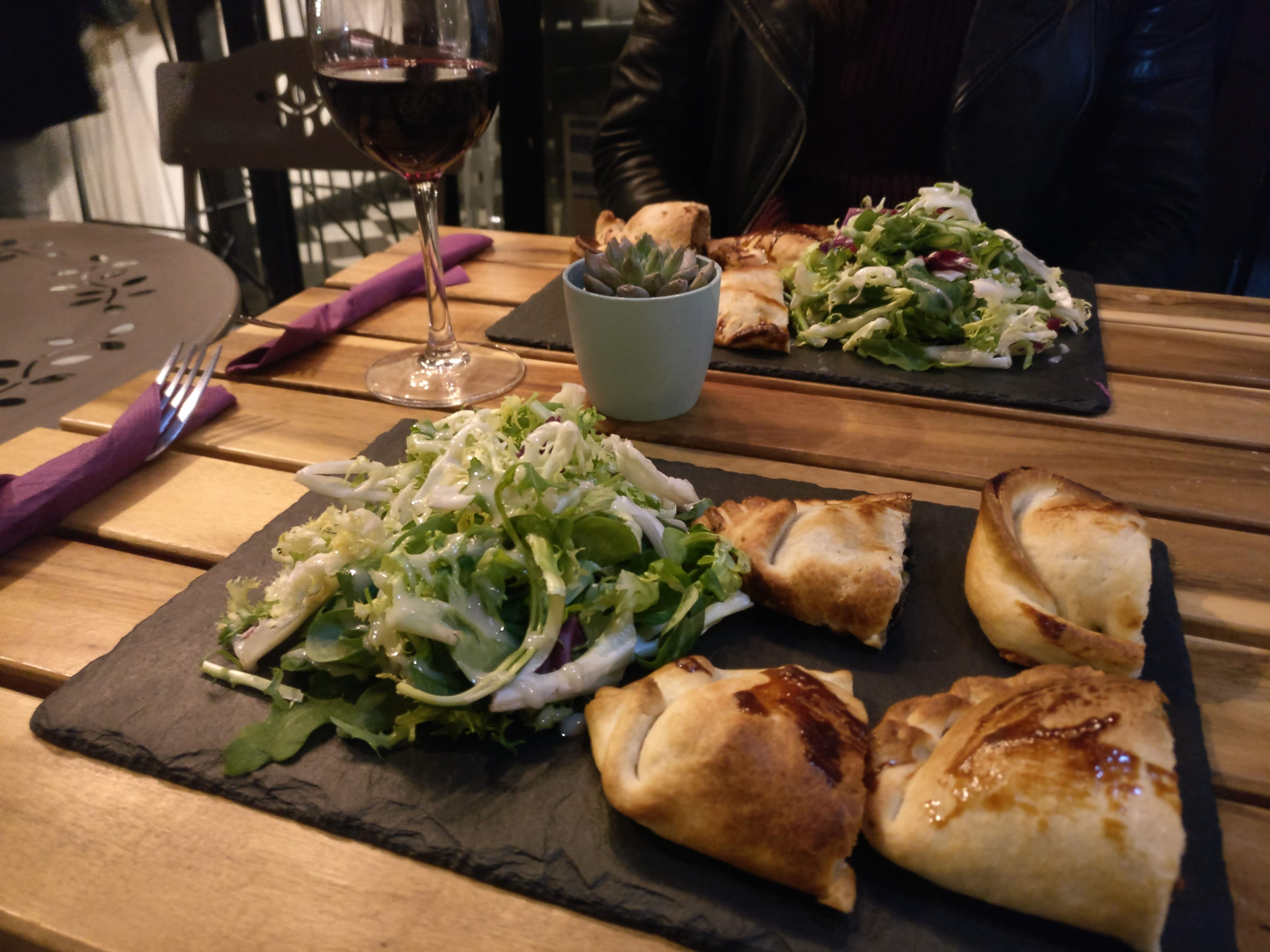 Le cuisinier était le serveur, ou le serveur était le cuisinier. Un honnête homme d'Argentine qui fait les empanadas les plus délicieuses de Paris. Un repas simple et sain, parfaitement accompagné d'un verre de vin.