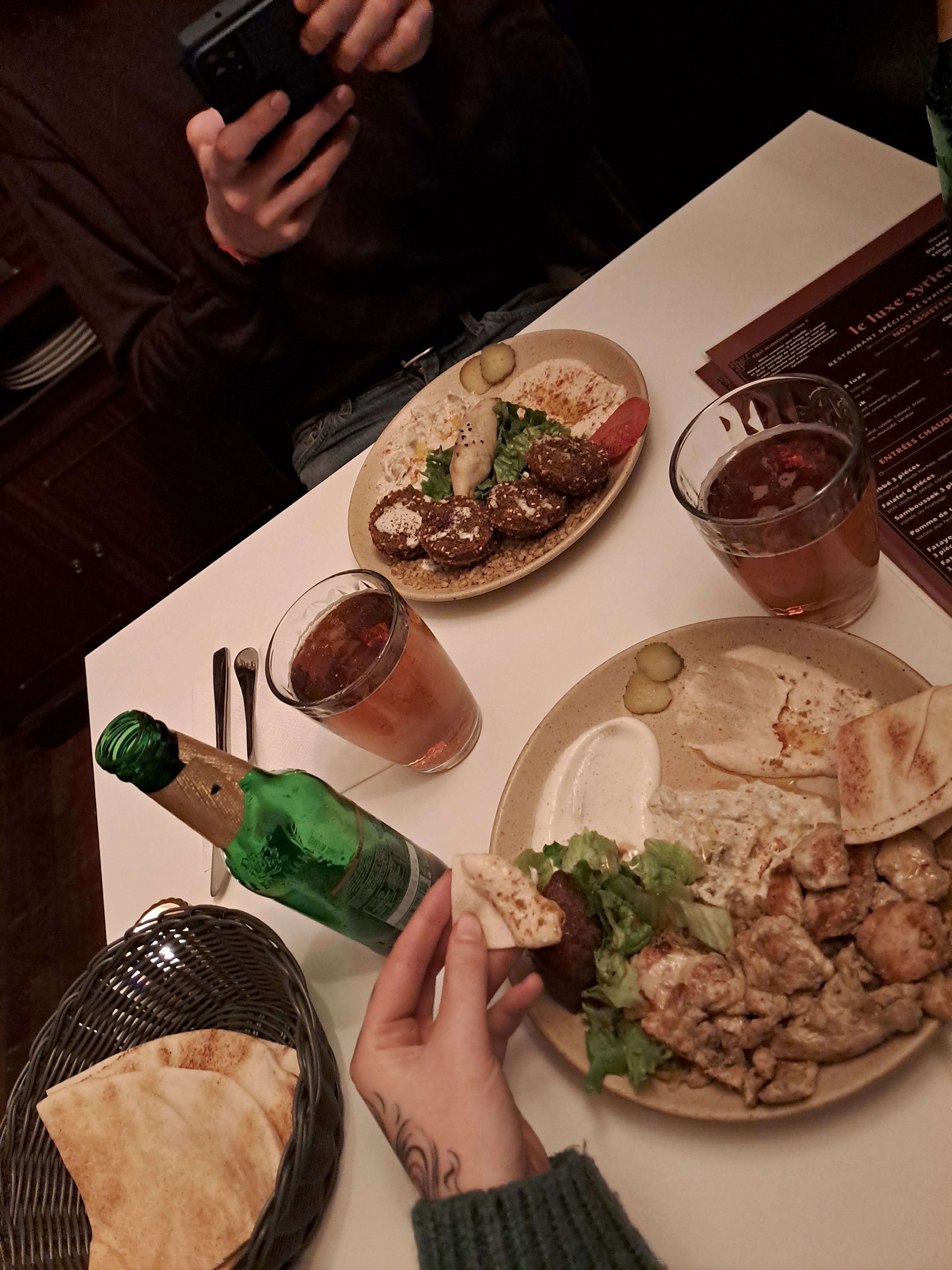 Un très bon moment passé au Luxe Syrien. Le repas est délicieux ! Les différents plats font voyager les papilles ! Tout est fait minute , tout est frais , je recommande a 100%. De plus, le gérant est d’une sympathie incroyable, une personne très simple , et à l’écoute de ses clients . Serveuse très souriante. Bravo! On vous souhaite une belle longue route . Elodie (et Carla) 😉