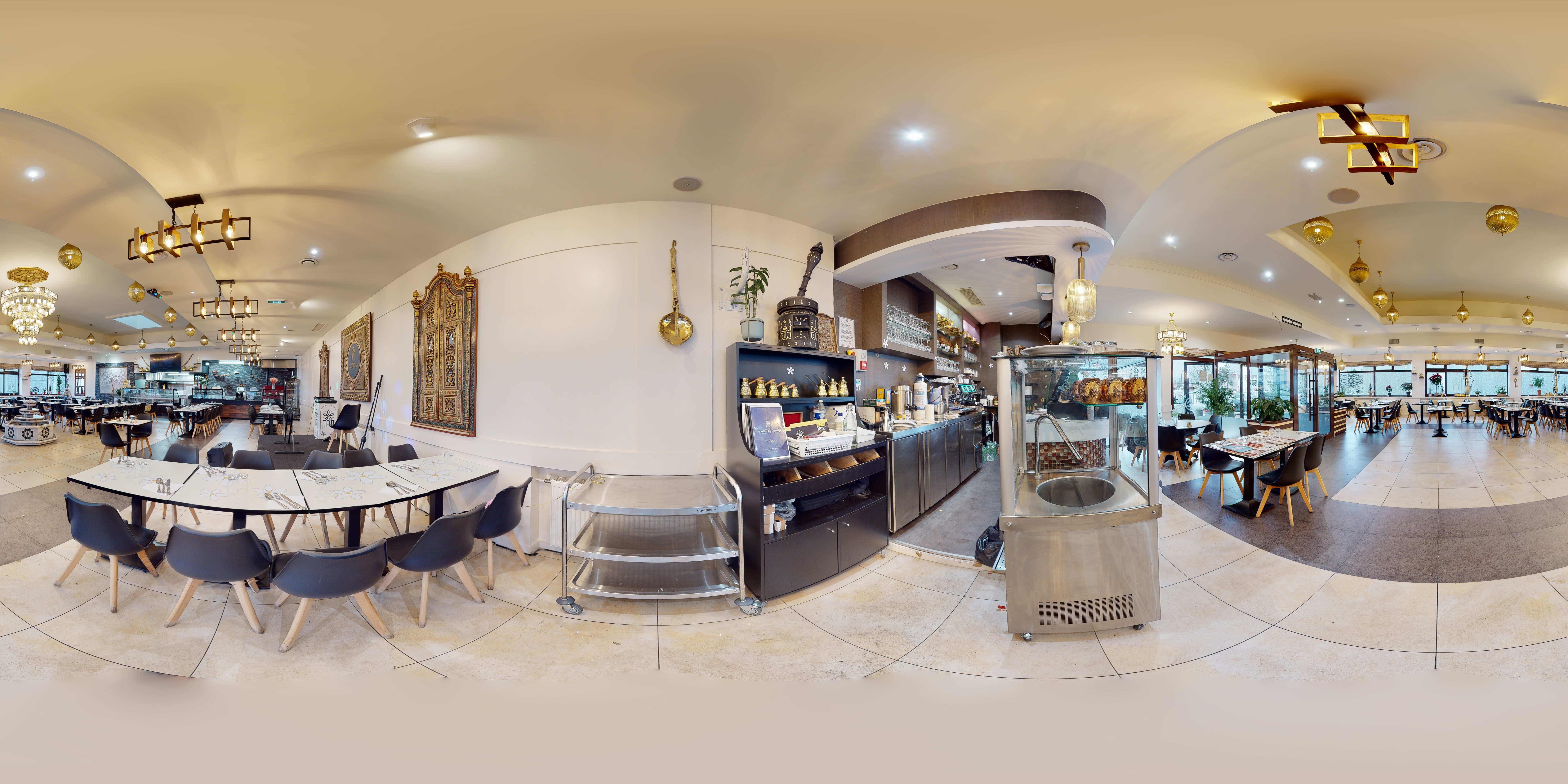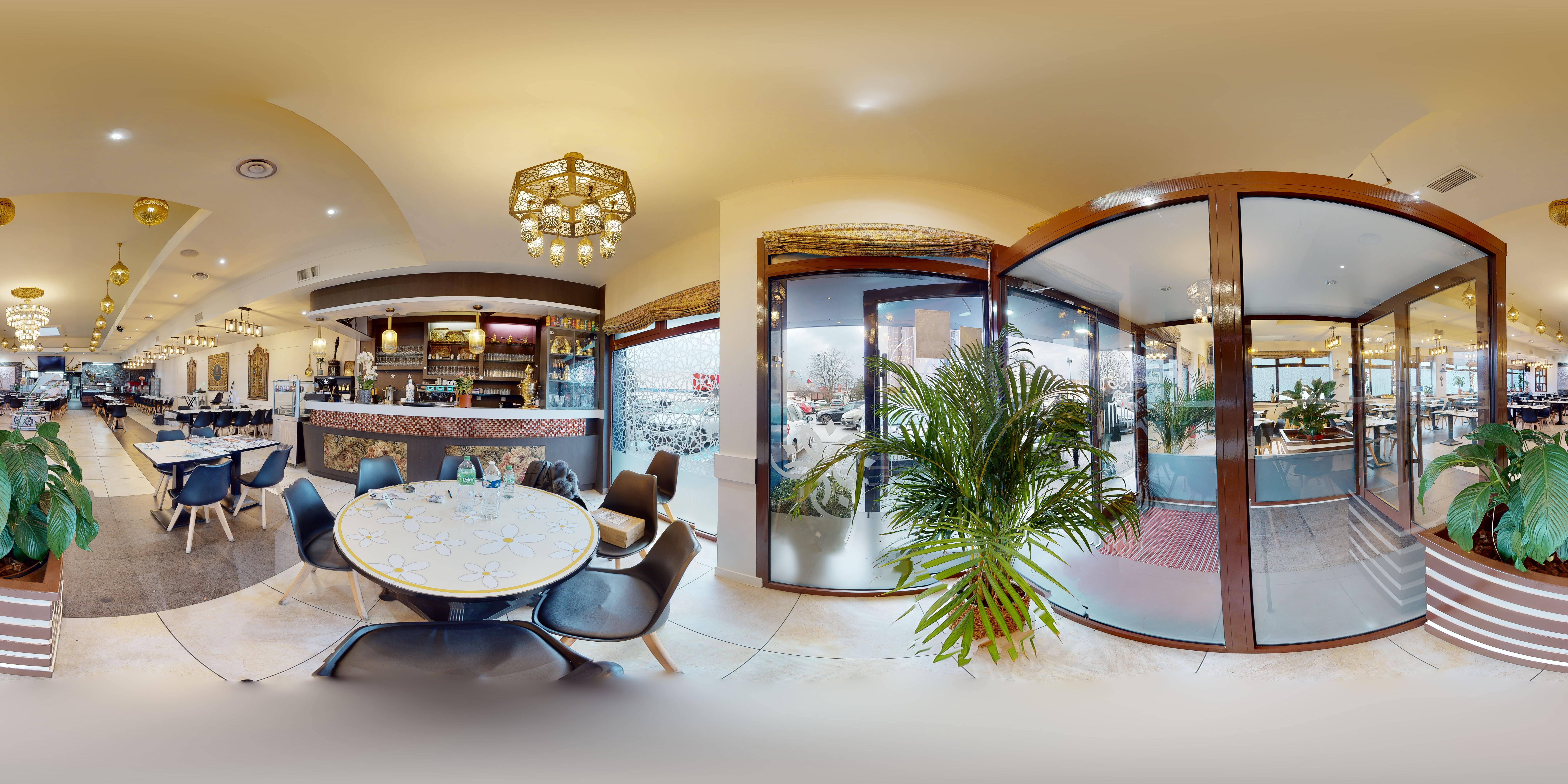 Très belle salle bien lumineuse et spacieuse, avec décor oriental luxe. Personnel accueillant et souriant. Variété de plats délicieux et bien présentés. Desserts fait maison 👍🏻