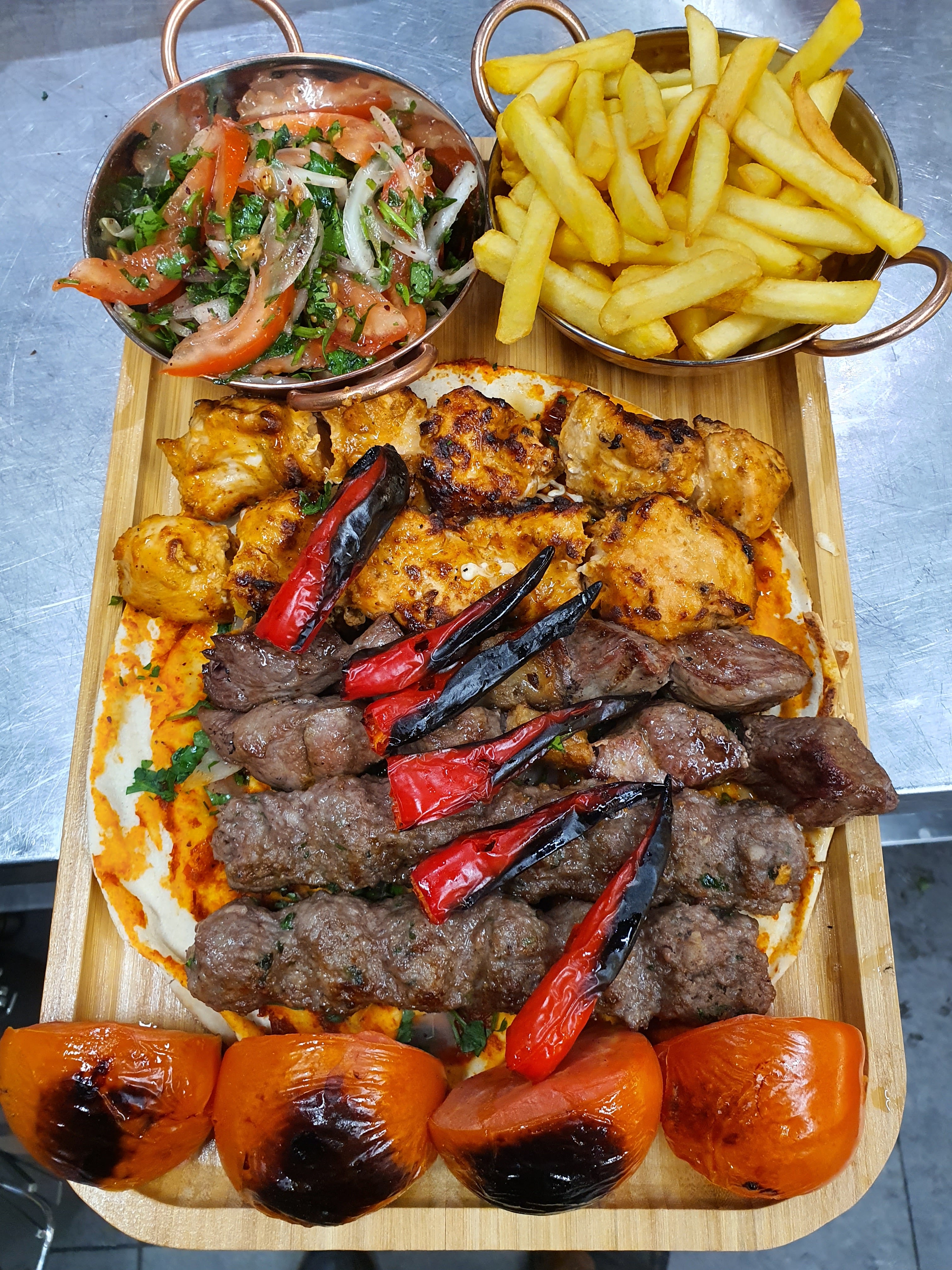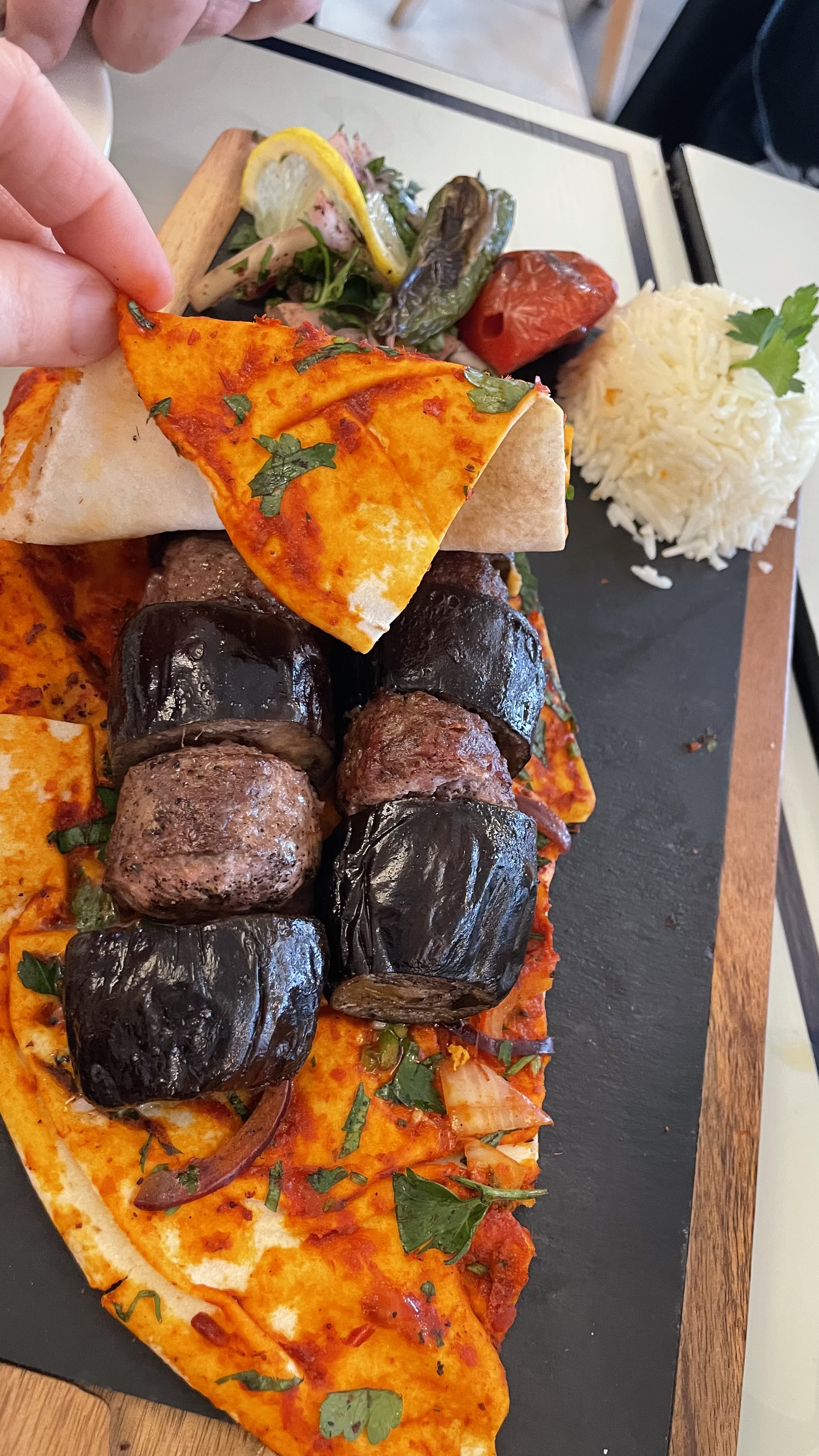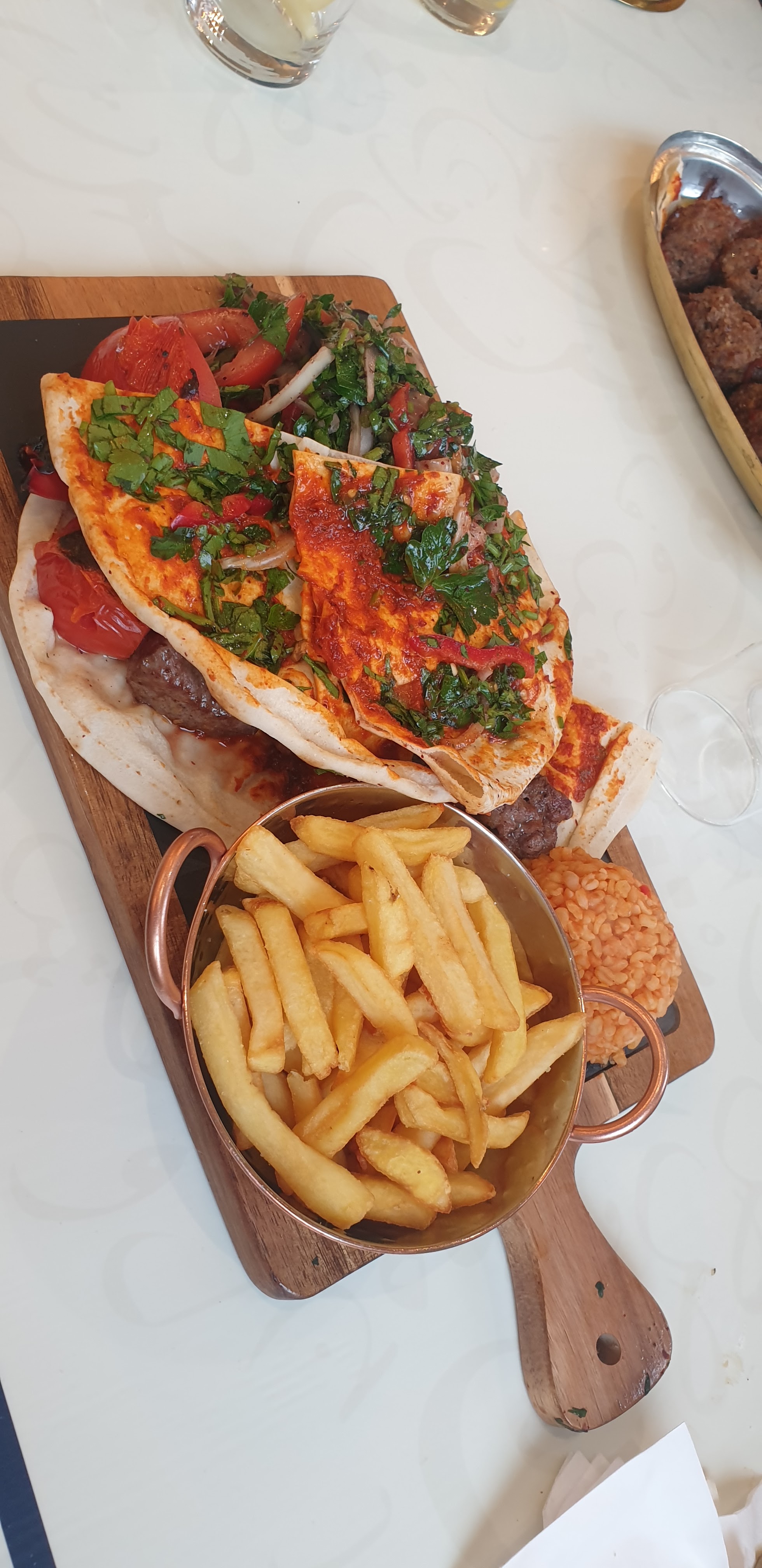 Brochettes succulentes c'est ce qui mérite les 3 étoiles. Plat très chers, portions petites et pas en nombre pour les personnes à table. On nous installe sur une table sous laquelle il y a des saletés qui ne sont pas nettoyées, idem le siège enfant. Service très lent. Les plats sont servis sans organisation : les mezzé peuvent arriver sans pain, avant ou après la viande, les condiments arrivent bien après la viande.