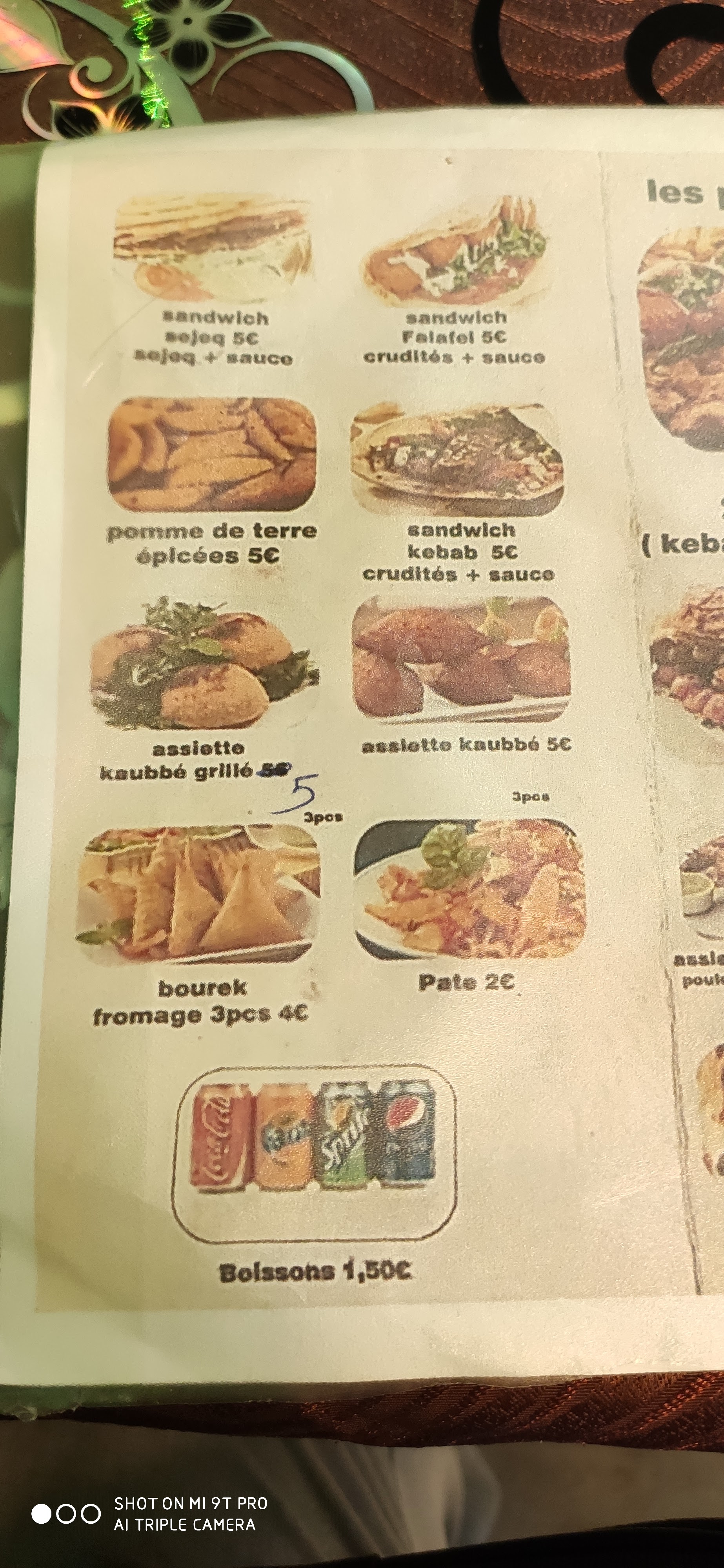 Bonjour, probablement, il y eu une erreur car le menu est servi avec une grande frit à la syrienne et boisson à 10 h.