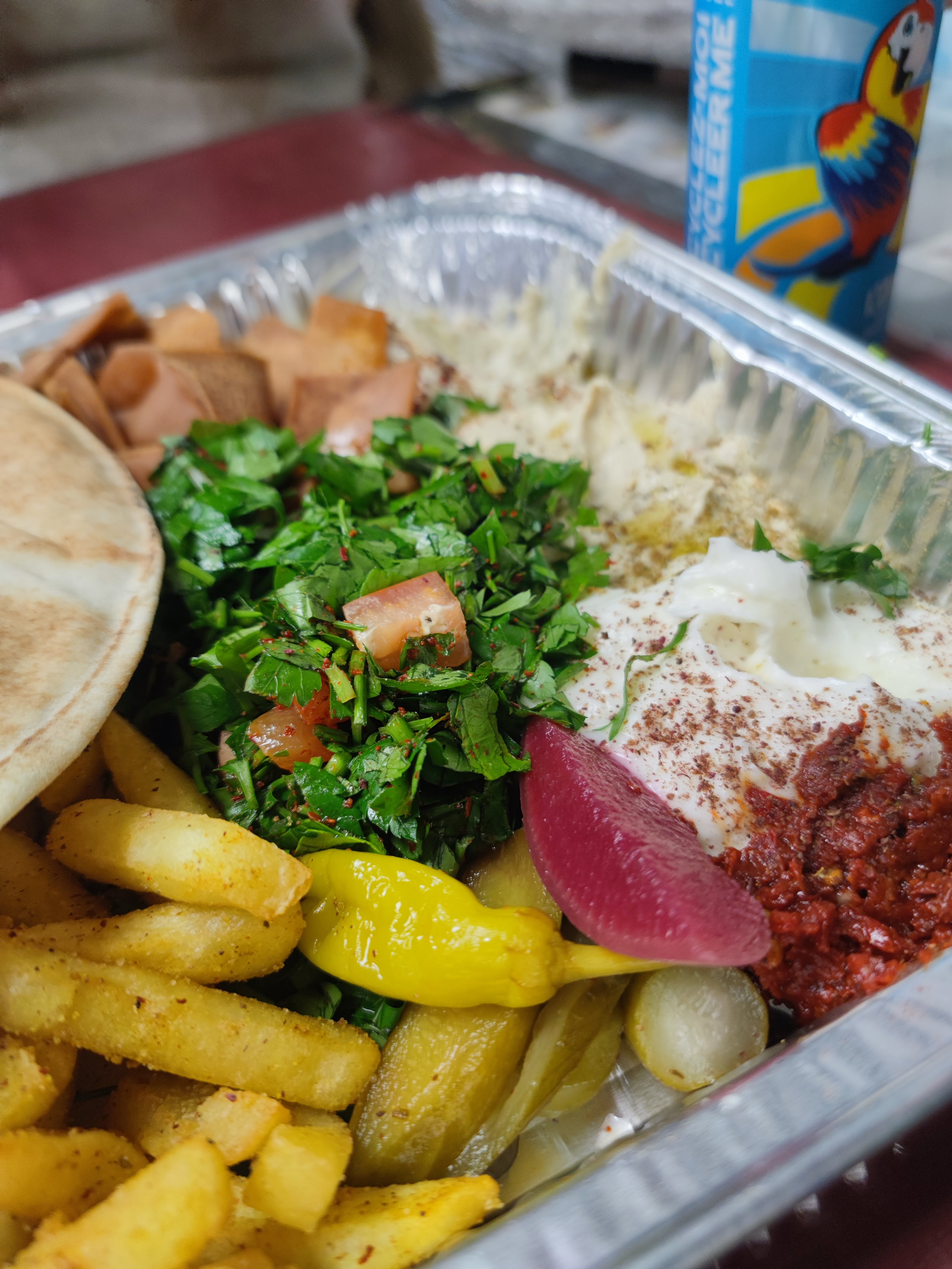 Le meilleur restaurant syrien sur Lille, je suis une cliente depuis 2020, ils avaient le meilleur poulet rôti malheureusement ils ont changé le menu plus tard et ne le font plus, mais les autres plats sont aussi bons, j’ai testé l’assiette mixte rt l’assiette shawarma, franchement on adore, portions généreuses, et les accompagnements le houmous, la harissa, la sauce ail et les frites c’est juste une tuerie. je recommande d’emporter car l’ambiance sur place n’est pas ouf, mais peut être sympa pour écouter de la musique syrienne.