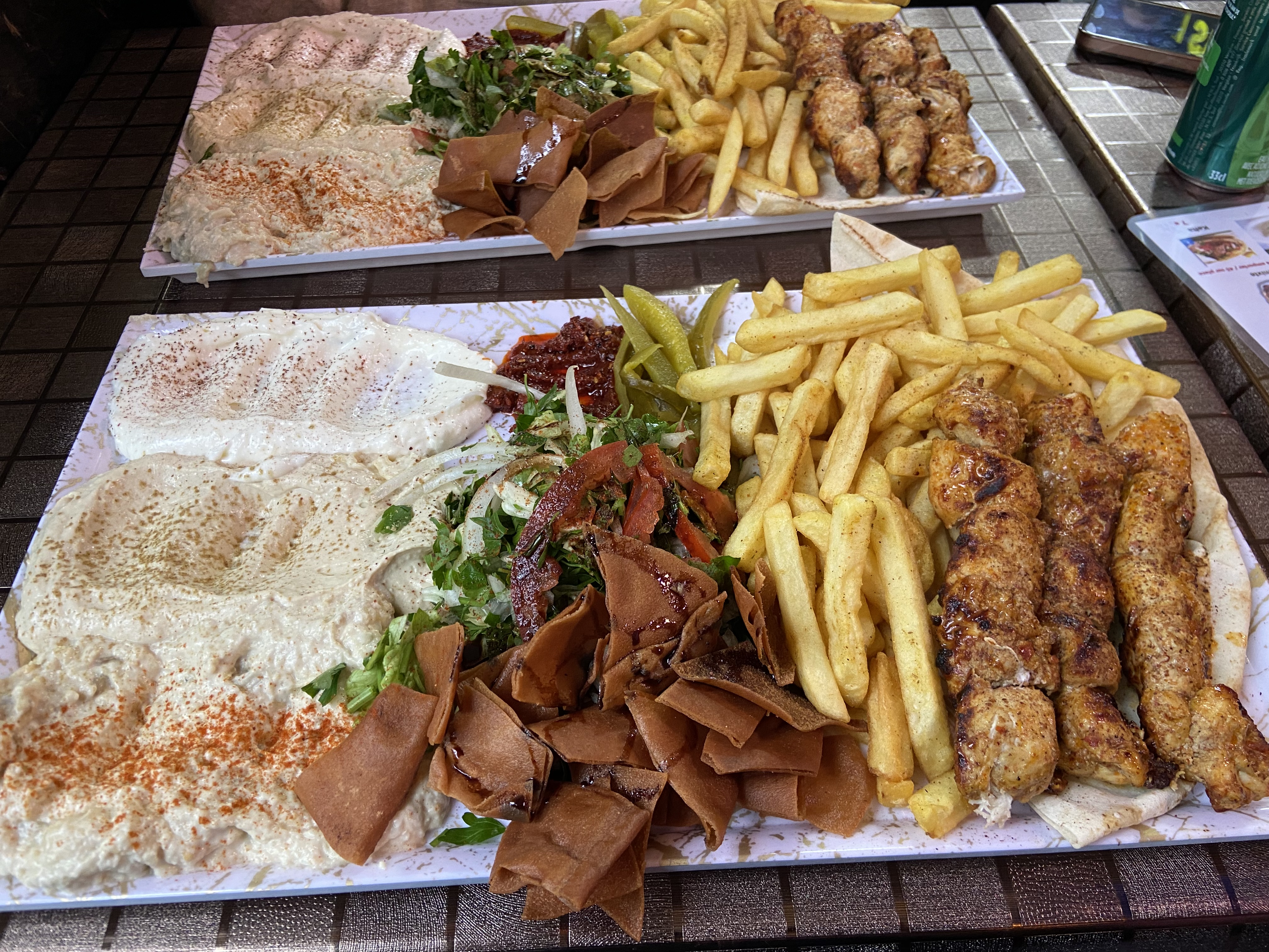Très bonne adresse, nous avons pris 2 grandes assiettes à partager, kefta et shawarma, les viandes sont bien marinées et bien accompagnées (frites, salade, 3 purées, fattouches, et 2 grandes galettes). C'est la 2eme fois qu'on vient, les enfants comme les grands se régalent. On recommande !