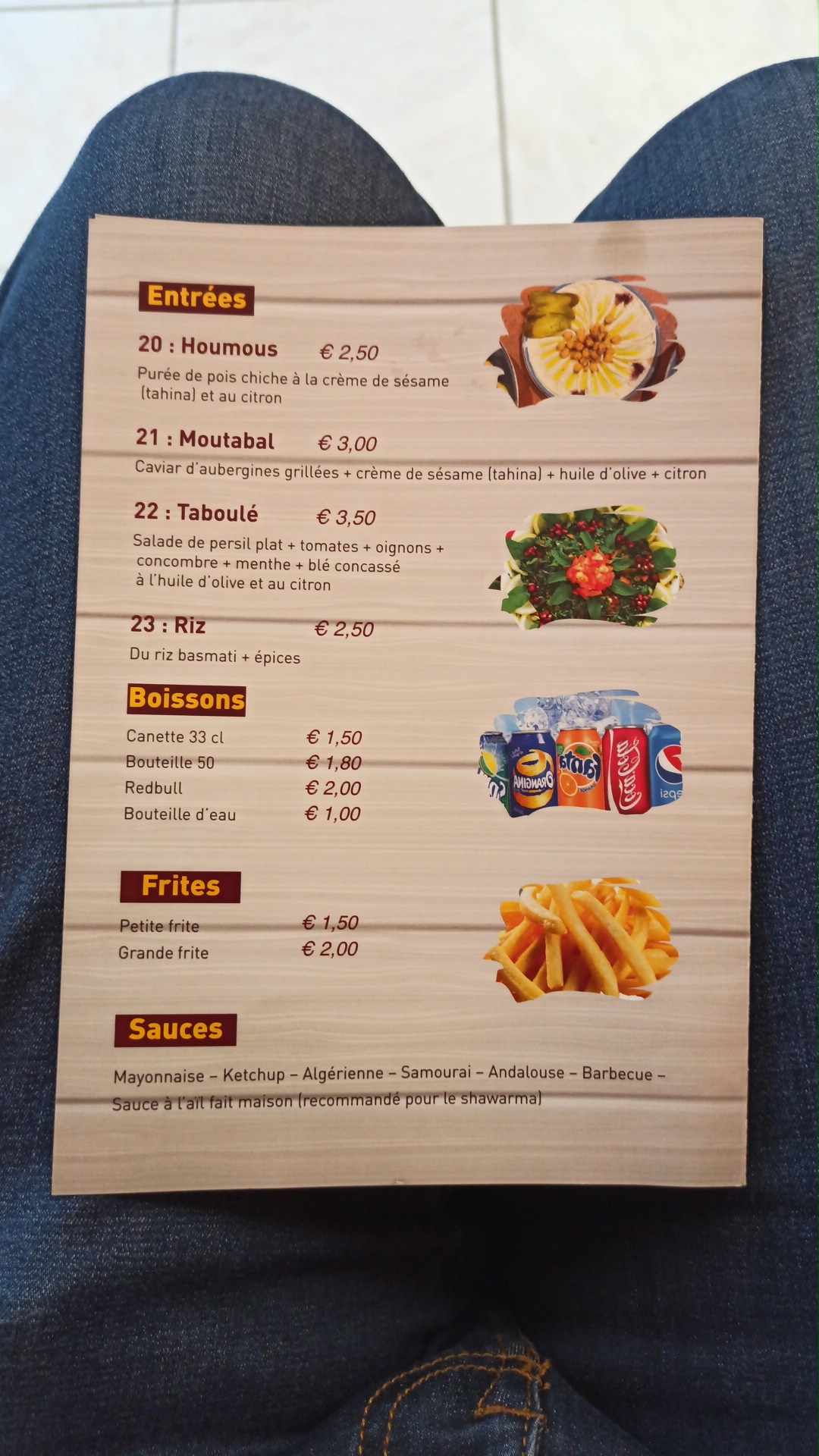 Le shawarma est incroyable, tellement il est bon , fait maison en plus , et le patron est super sympa, sa en vaut franchement le coup 😁