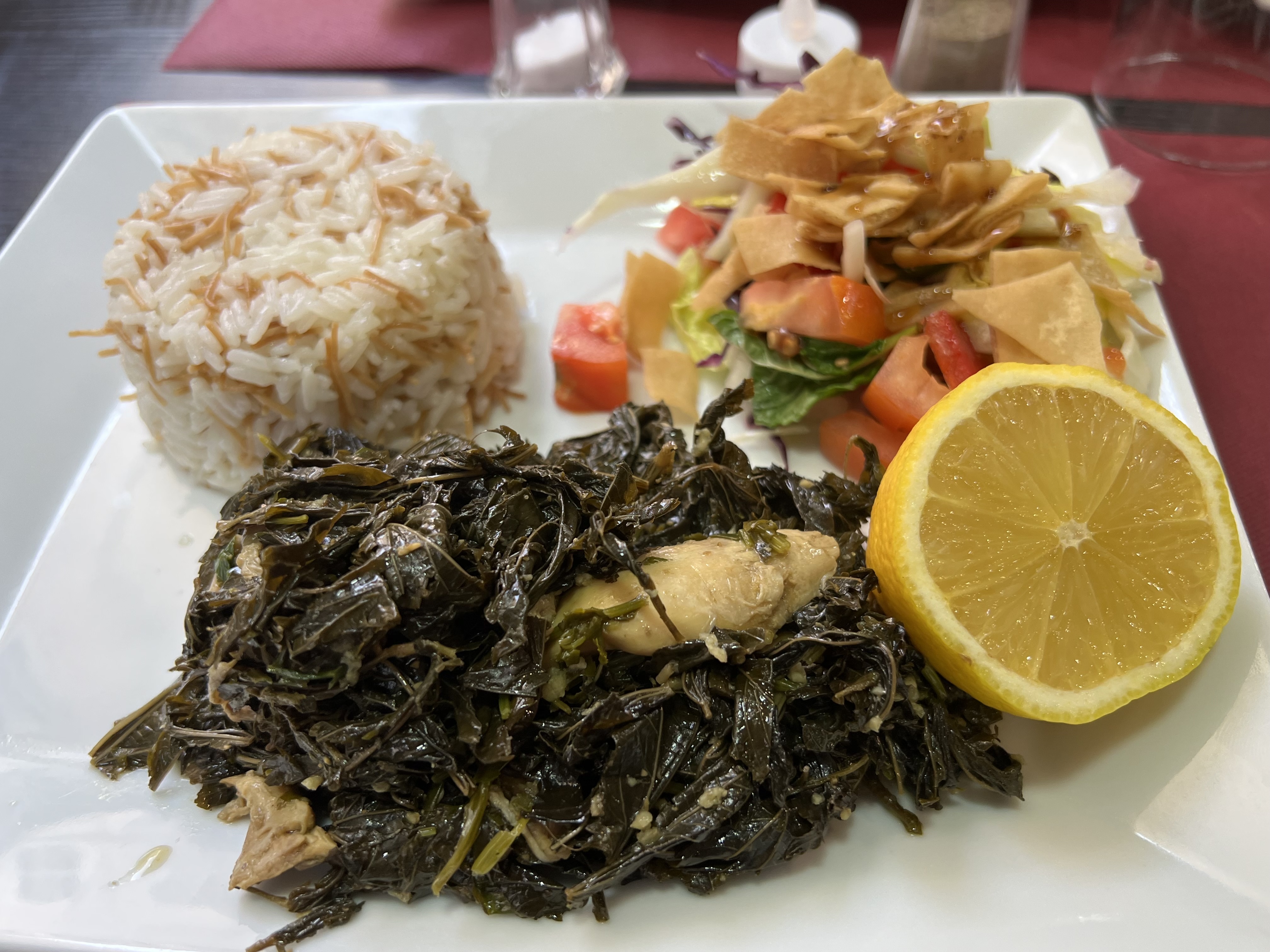 Une première dans le restaurant Syrien. J'ai pris un shawarma poulet (grillades), l'assiette était belle mais le poulet était sec, et le goût n'était pas au rendez vous pour le poulet. Le riz, la salade et le houmous étaient très bien en revanche. Le fatayer au fromage très bon par contre. Le service était correct, mais pas forcément une grosse ambiance !