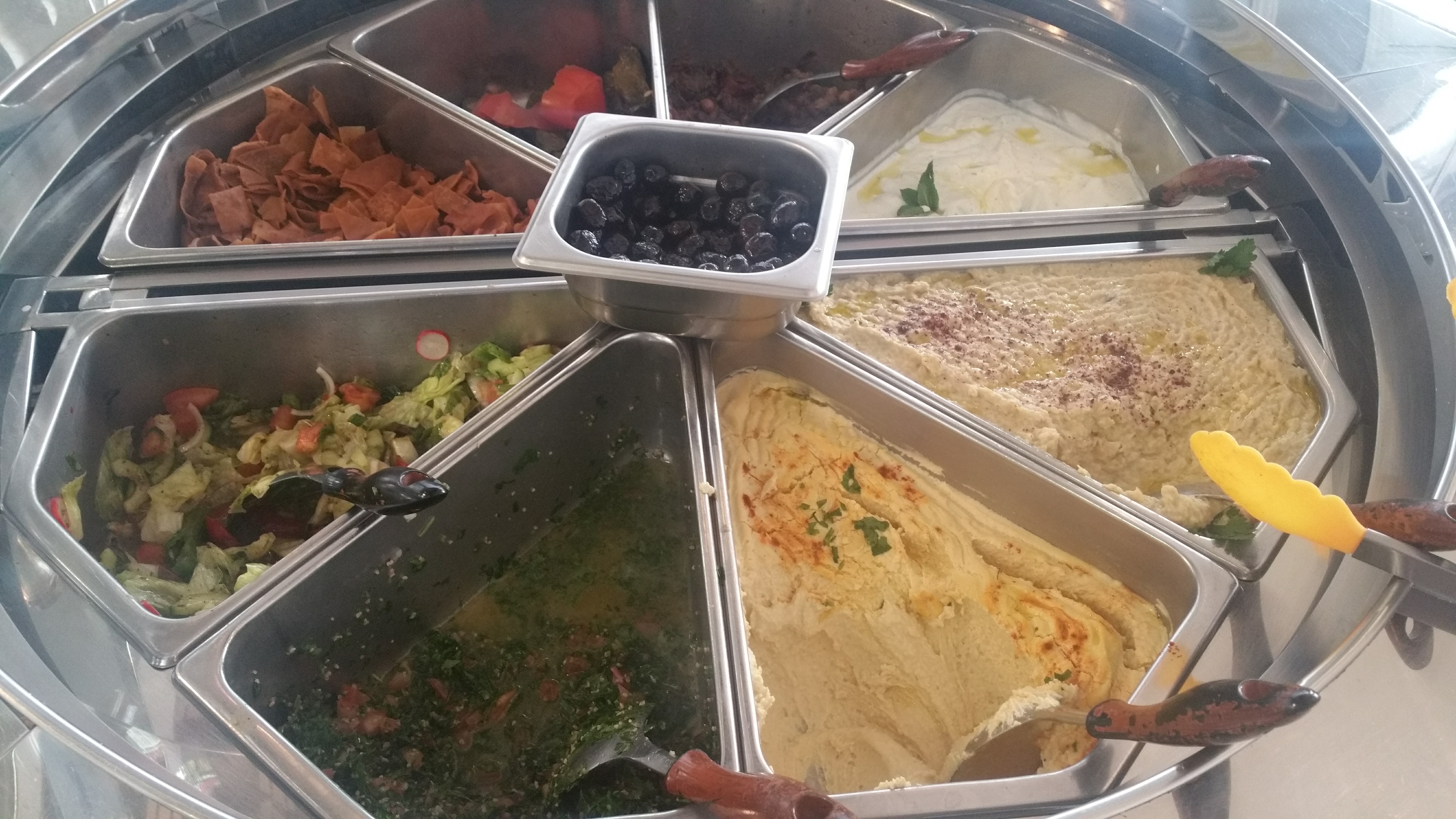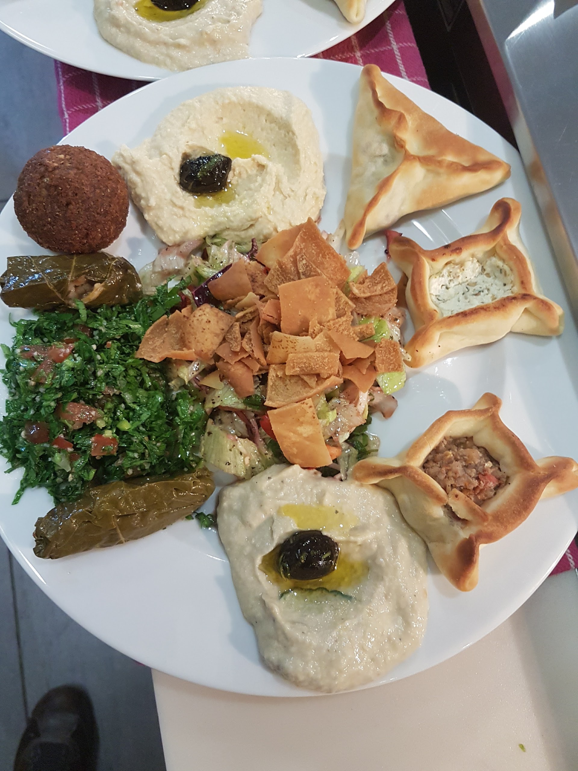 Accueil très chaleureux, très aimable et très polie. Le choix est grand et les aliments sont comme le veut la cuisine Syrienne c'est à dire une nourriture saine pour la santé.Très bon souvenir avec mes enfants. Fatayer fromage, fatayer viande et fatayer épinards une découverte. Feuilles de vigne.