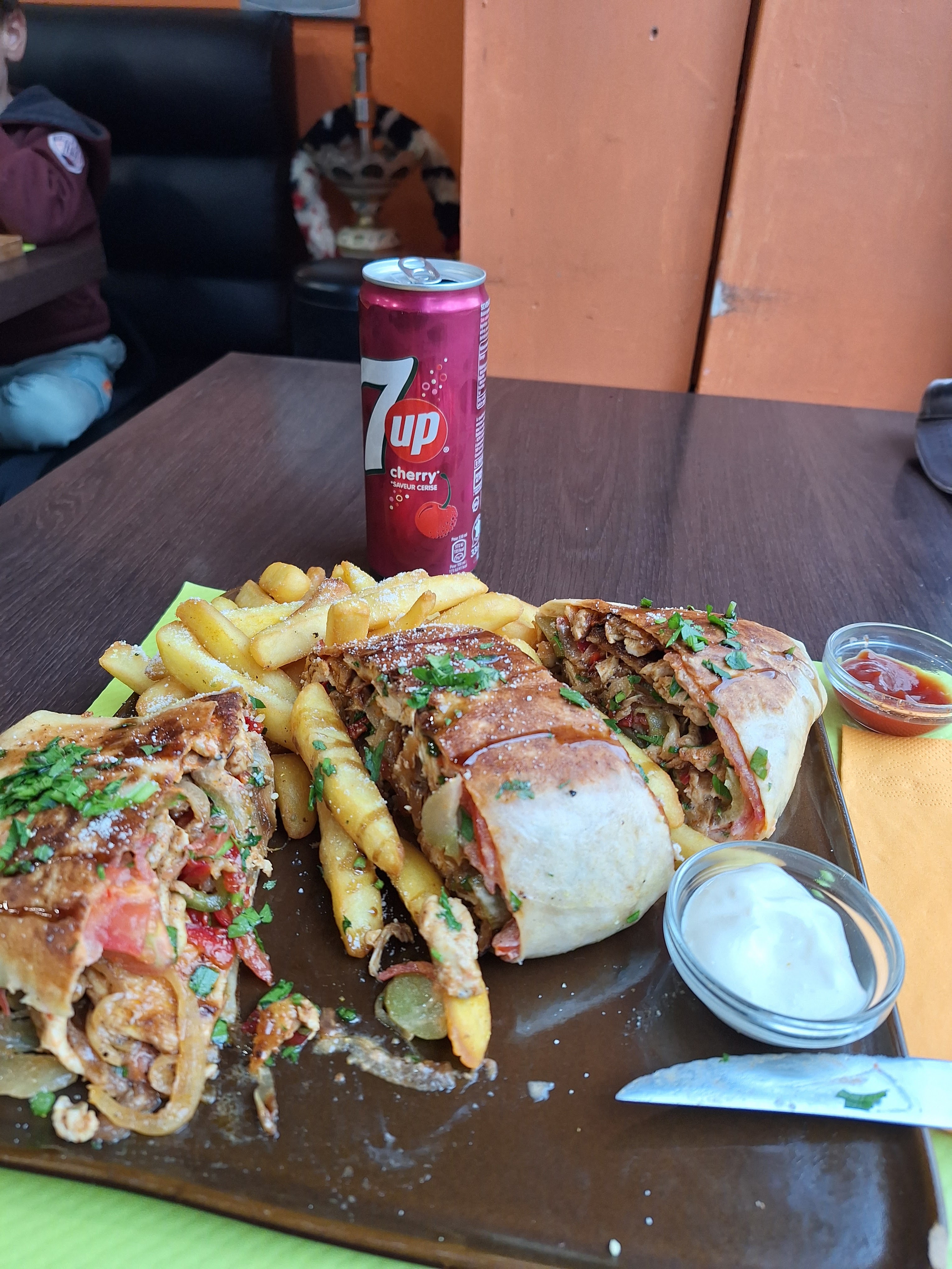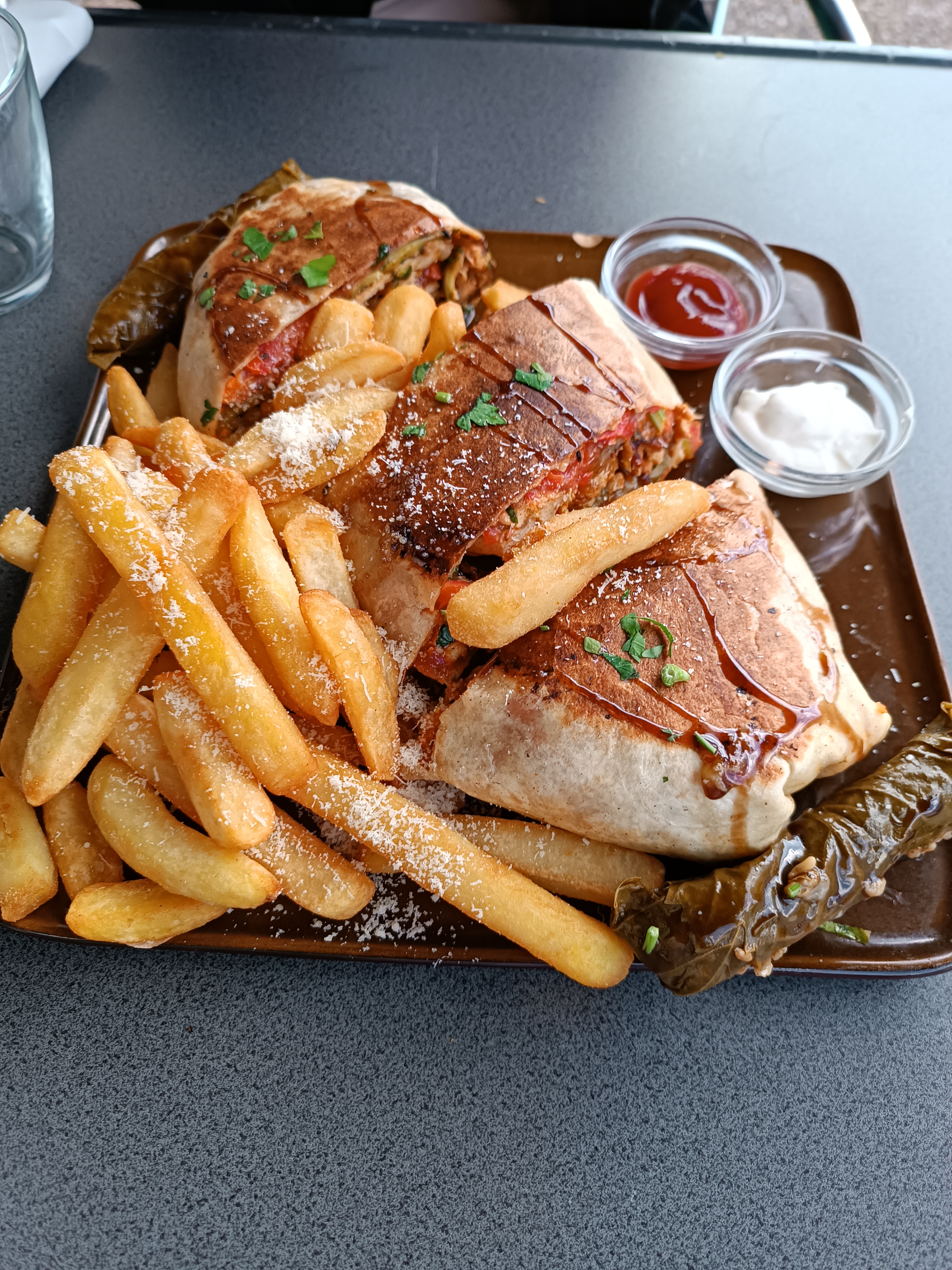 Notre dîner était très bon, cet endroit n'est vraiment pas ce qu'il paraît. Au début, de l'extérieur, cela ressemble à une crêperie/burger ordinaire, mais une fois que nous avons eu le menu, il s'est avéré qu'ils proposaient également un menu syrien, qui était très très bon. Tout était préparé frais et c'était très savoureux. Je reviendrais certainement ici.