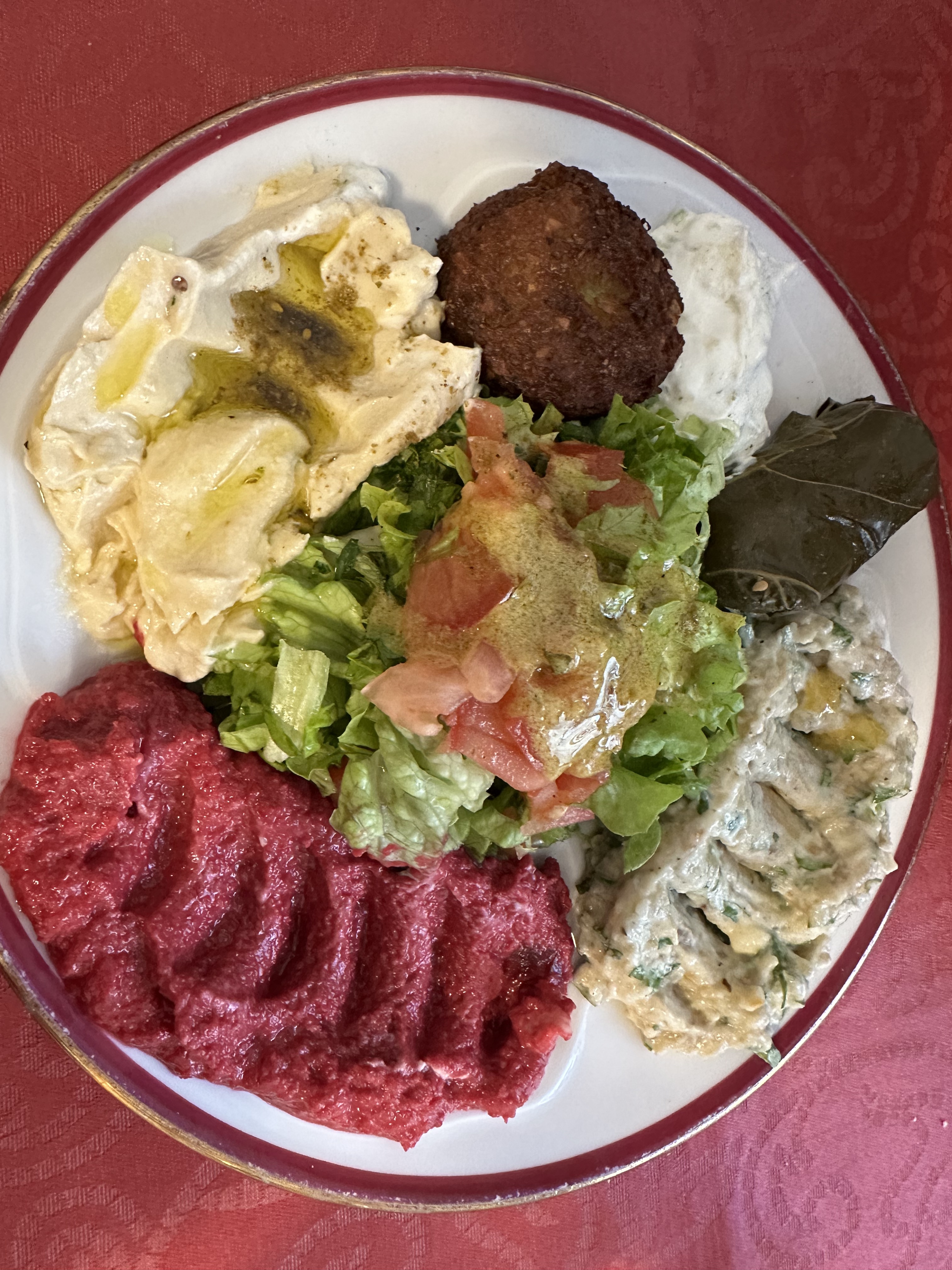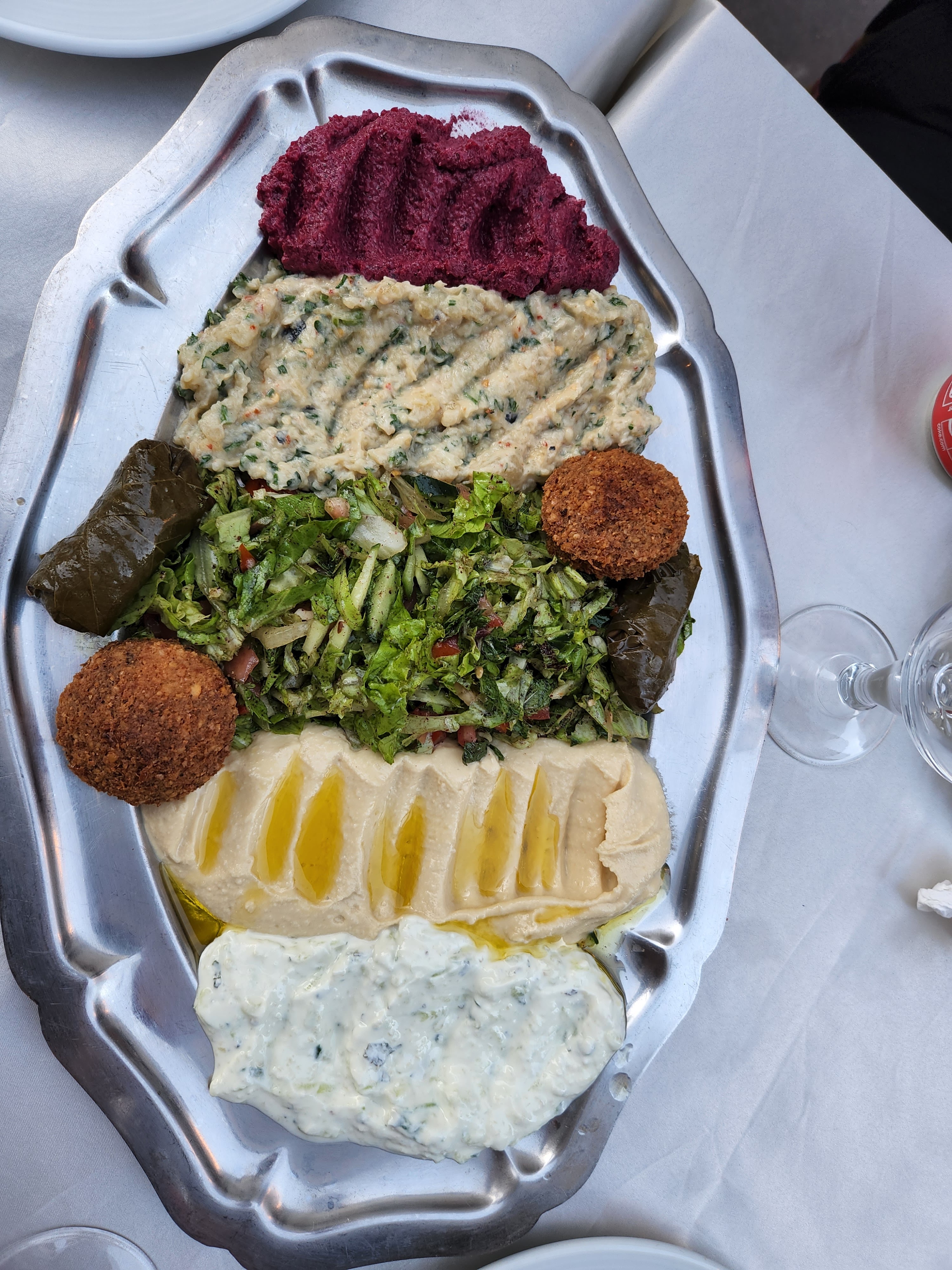 Il y avait une très bonne sélection de mezze. Les propriétaires sont incroyablement sympathiques et ont même apporté des jouets pour distraire notre fille impatiente.