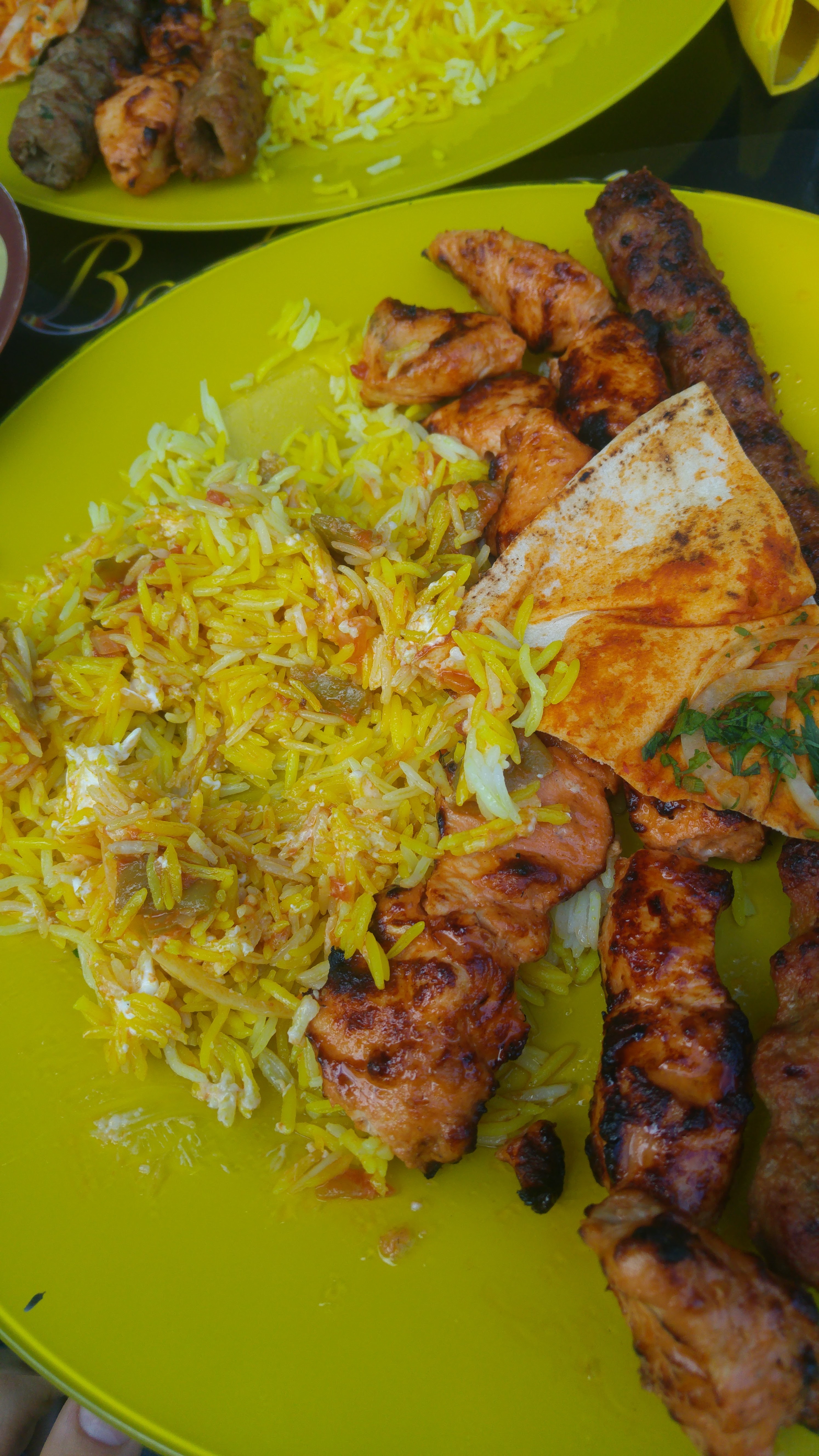 Excellente nourriture incroyablement savoureuse, rencontre Halal, différents mezze frais, assiette de riz et barbecue, la rencontre est tendre, fondante en bouche et très bien épicée. Le service est rapide avec des serveuses sympathiques malgré l'affluence. Merci. Je recommande vivement.