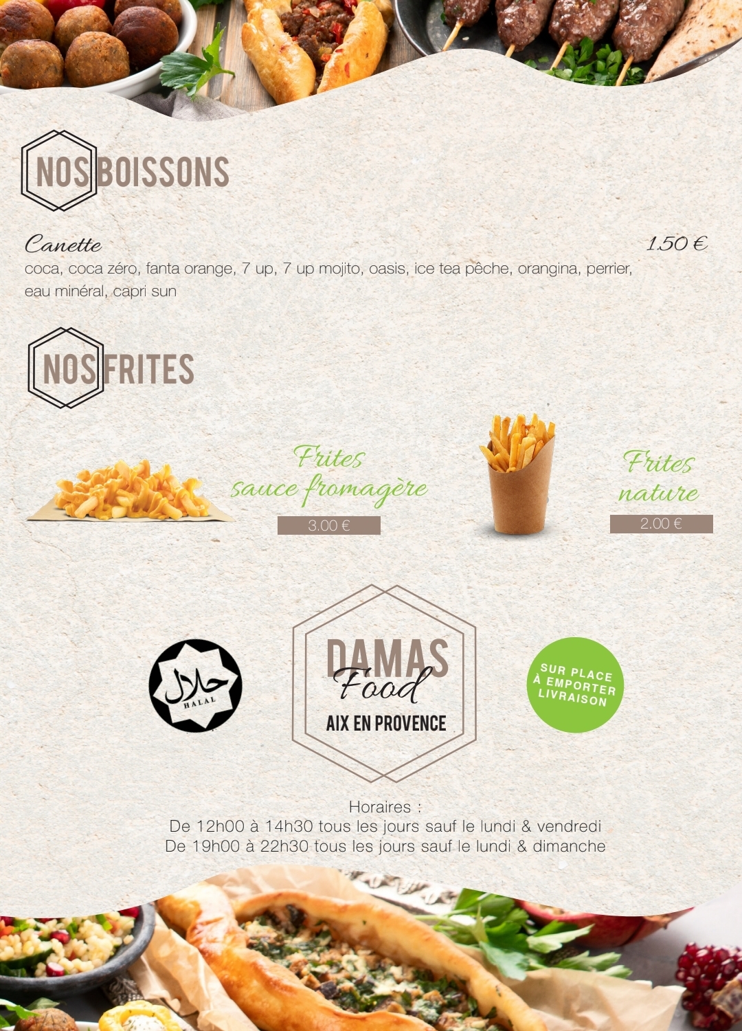 merci beaucoup pour votre excellent commentaire et votre soutiens nous vous attendons sur place pour faire connaissance et pour vous faire apprécier de nouvelles saveurs orientales en attendant vous pouvez commander aussi directement sur notre site et merci encore pour votre fidélité exemplaire avec toutes nos salutations le famille du restaurant le Damas a Aix en Provence