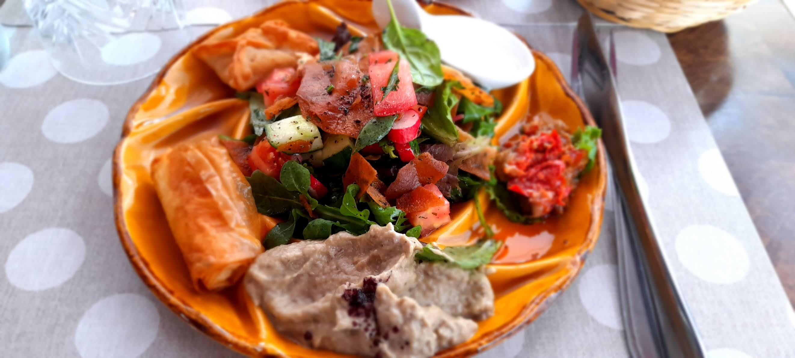 Un accueil chaleureux,et un repas découverte avec un assortiment de mezze savoureux.