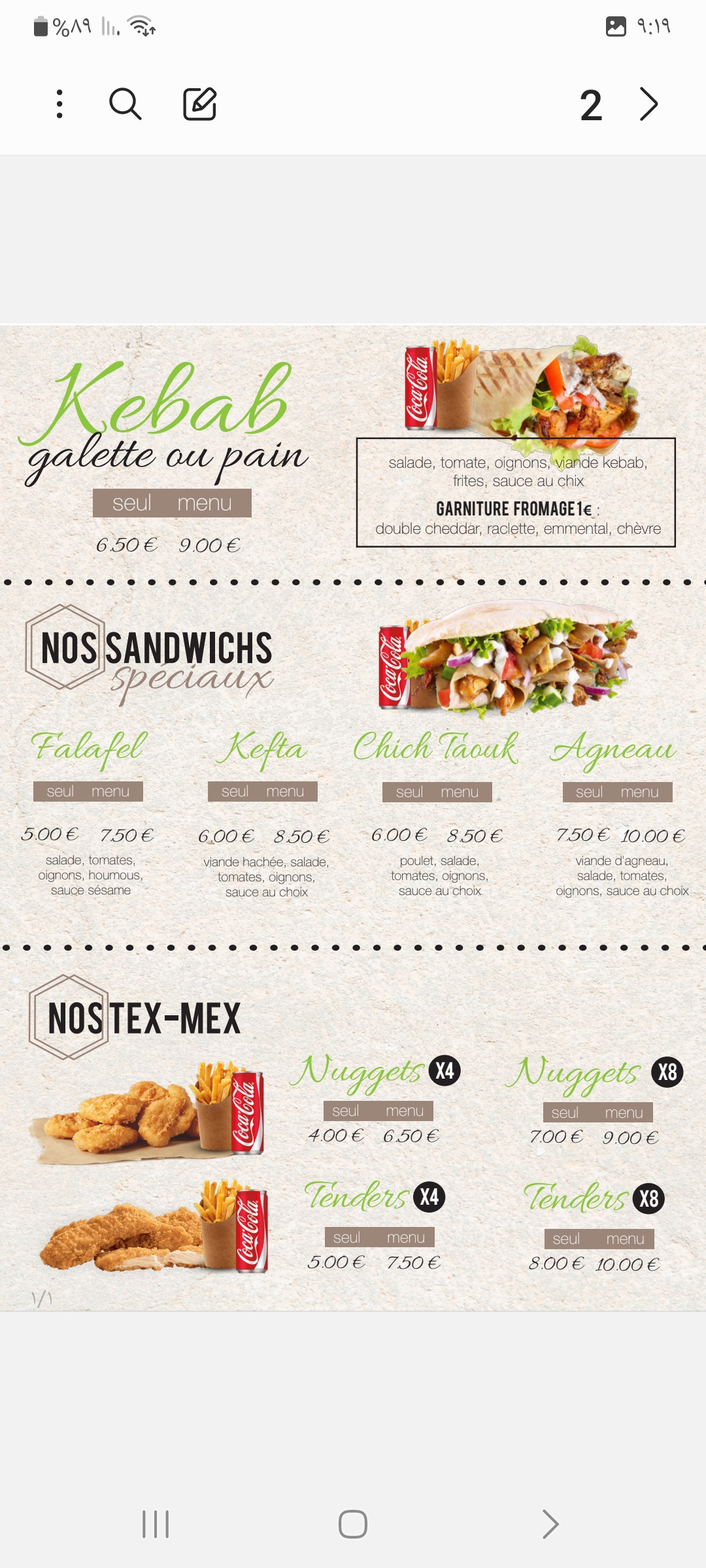 Tres bon Fait maison sauf peut etre le the a la menthe ;) Super service et tres chaleureux Merci encore pour les sambusek !