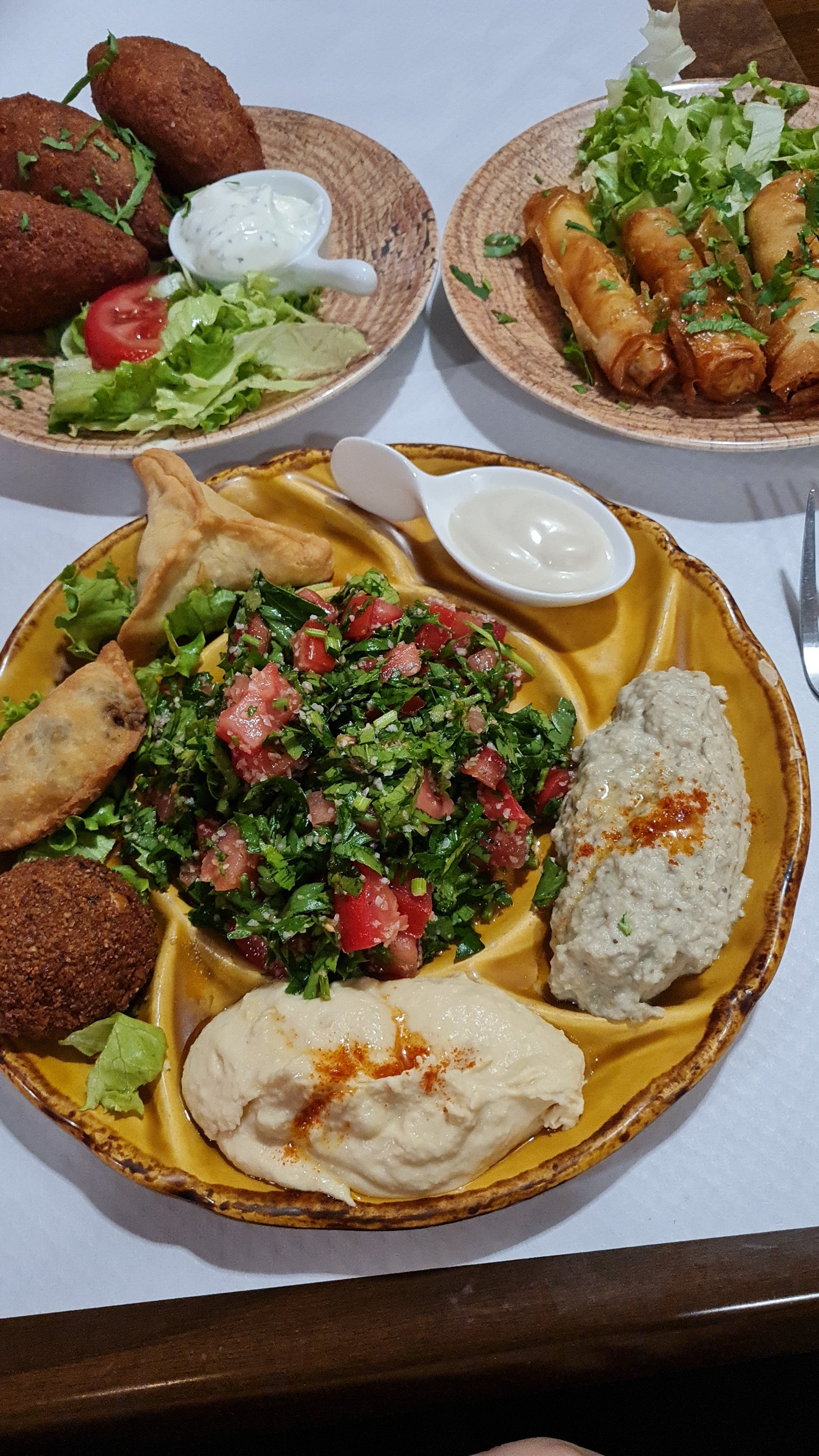 Super restaurant syrien, nous avons testé les mezzes, les arrayes, des grillades ainsi qu'un assortiment de pâtisseries. Tout était excellent et je recommande vivement ! Une adresse où nous retournerons c'est certain !